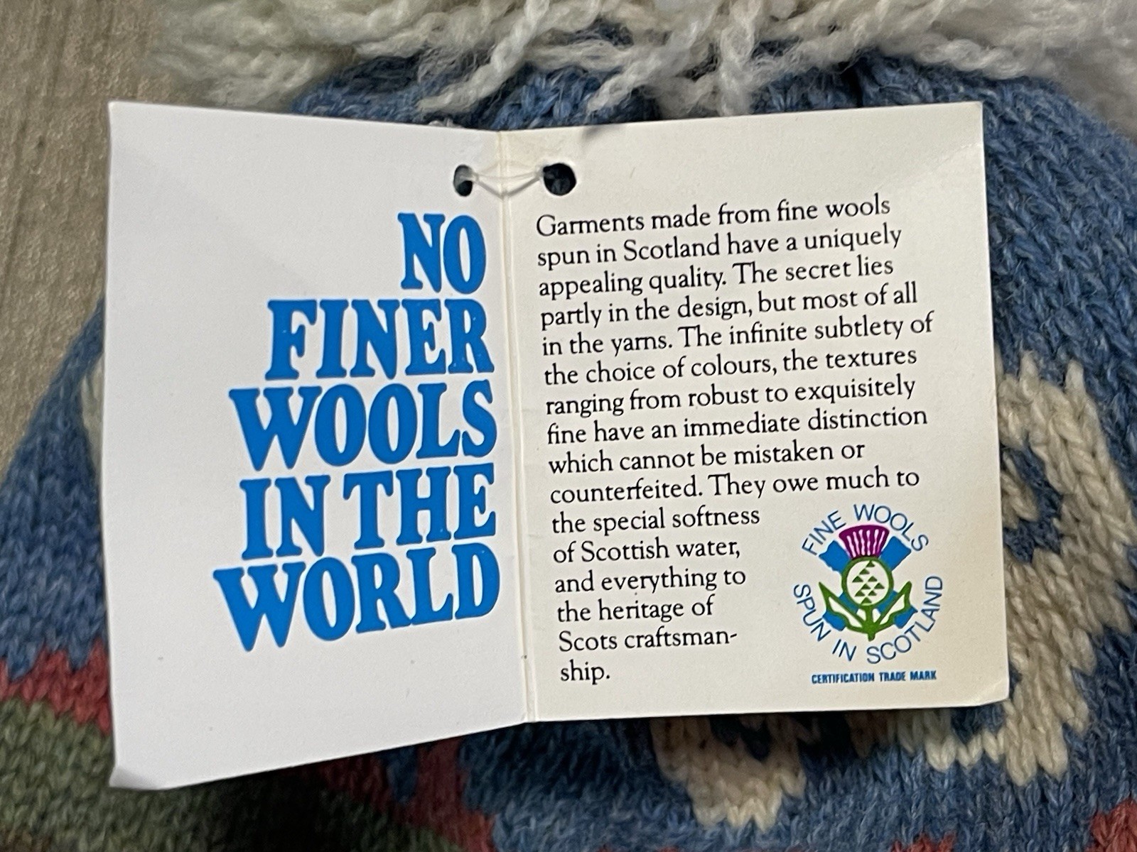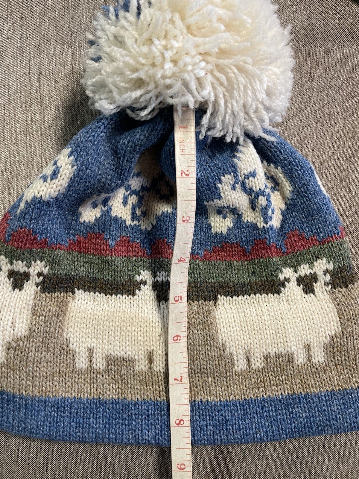 как выглядит Vintage FINE SCOTTISH WOOL SPINNERS POMPOM BEANIE HAT, Sheep Design, Adult, NWT фото