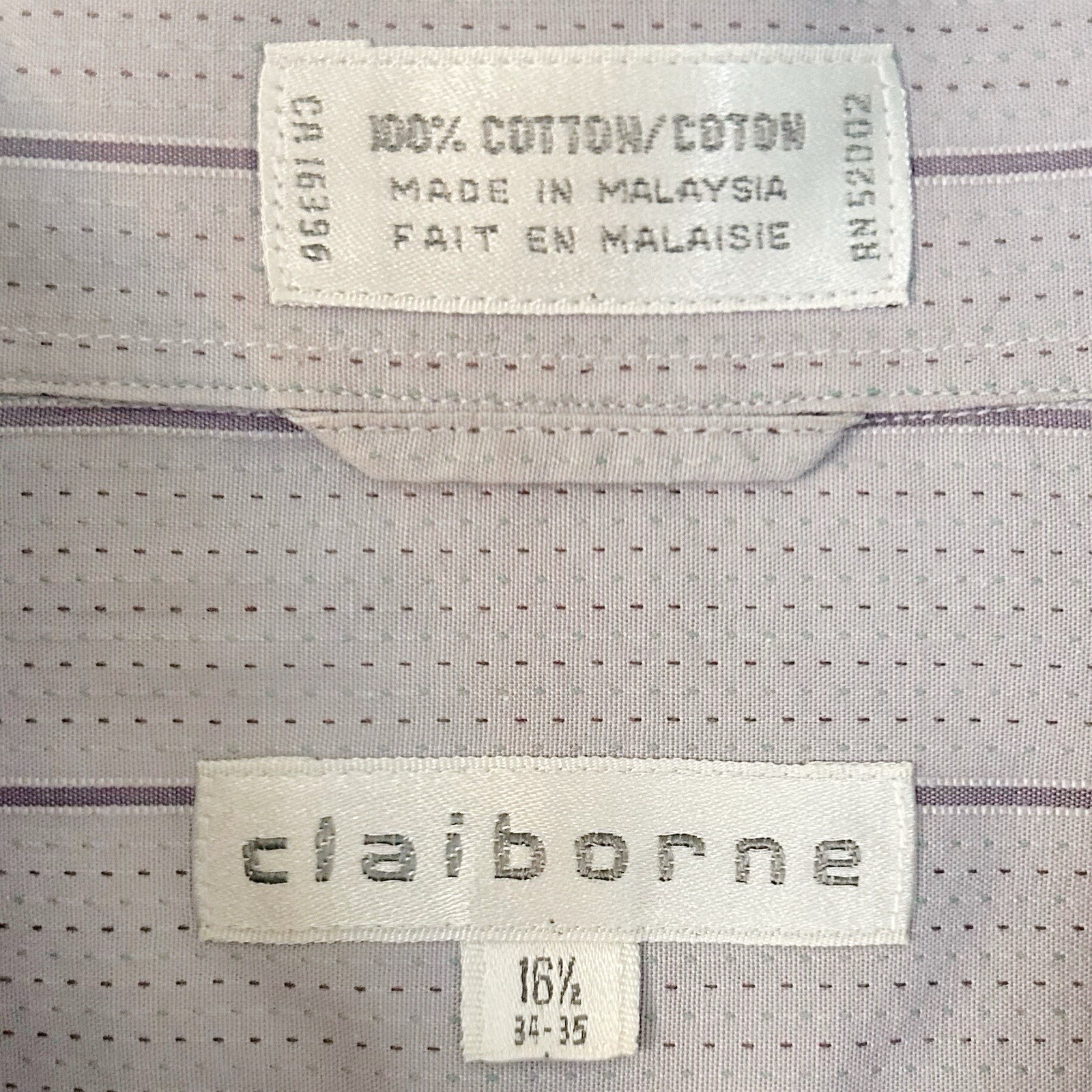 Claiborne Men s Grey Purple Striped 100 Cotton Dress Shirt Button Up Size 34 35