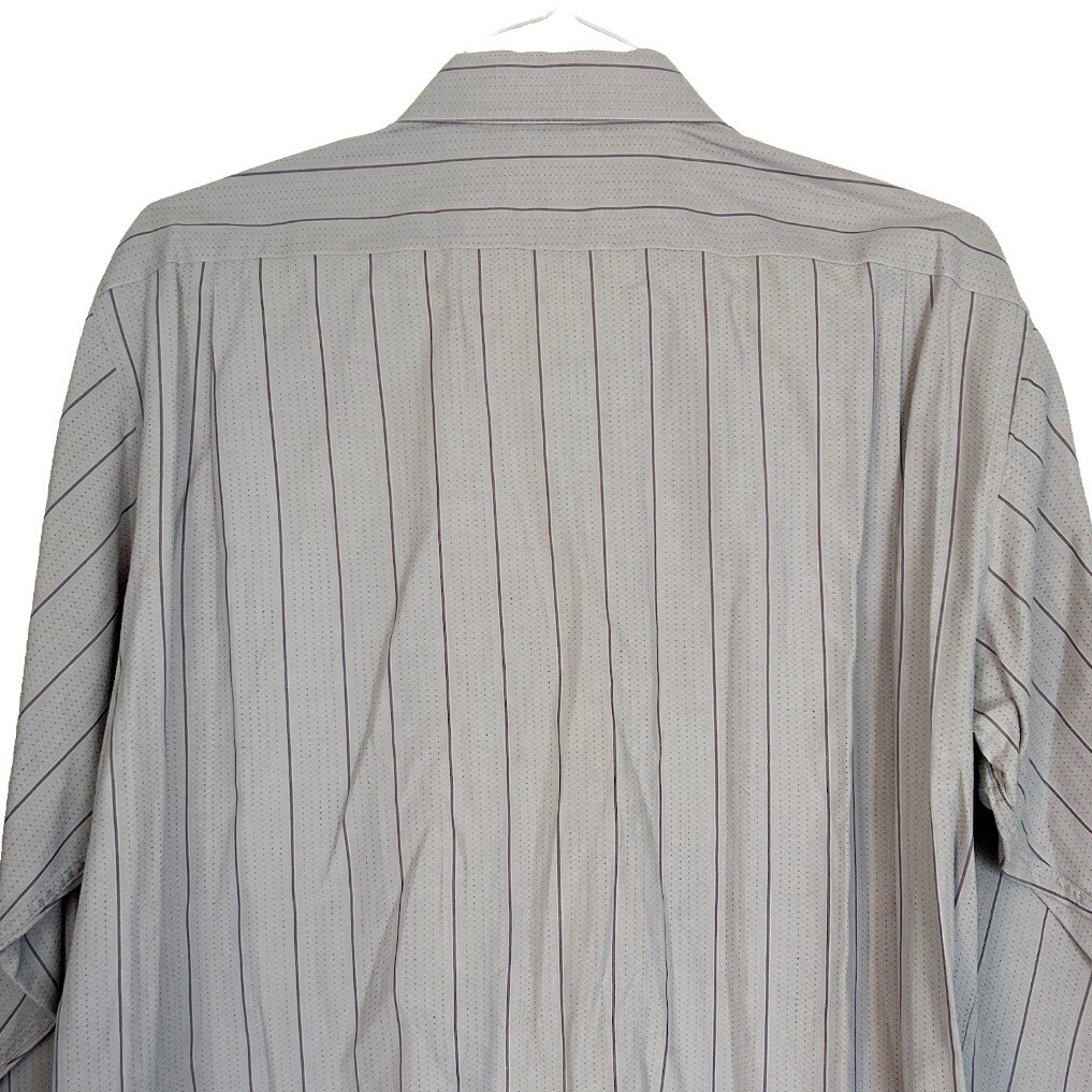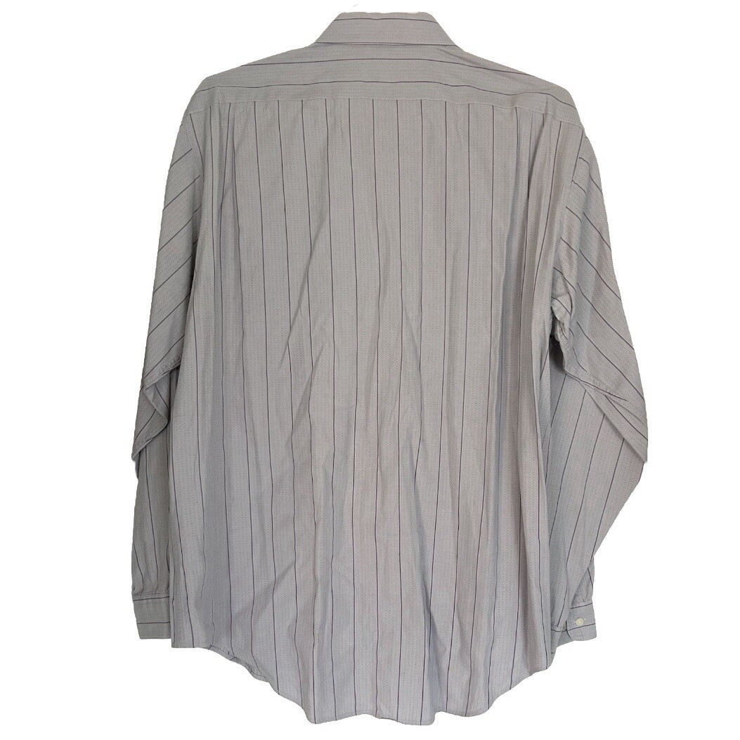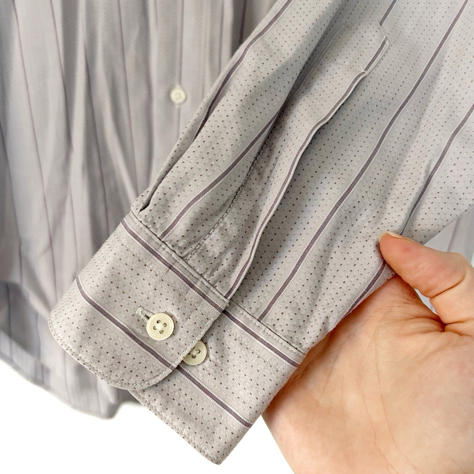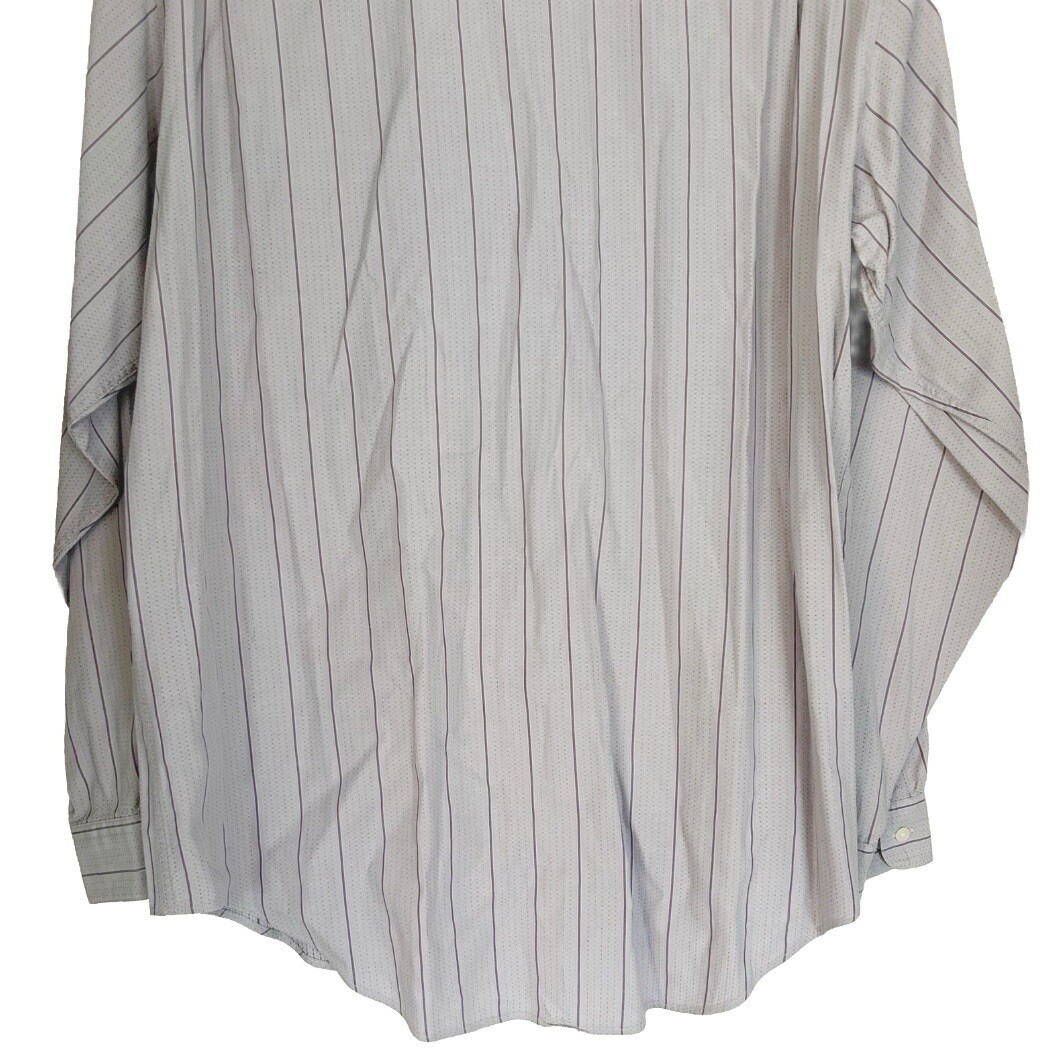 как выглядит Claiborne Men s Grey Purple Striped 100 Cotton Dress Shirt Button Up Size 34 35 фото