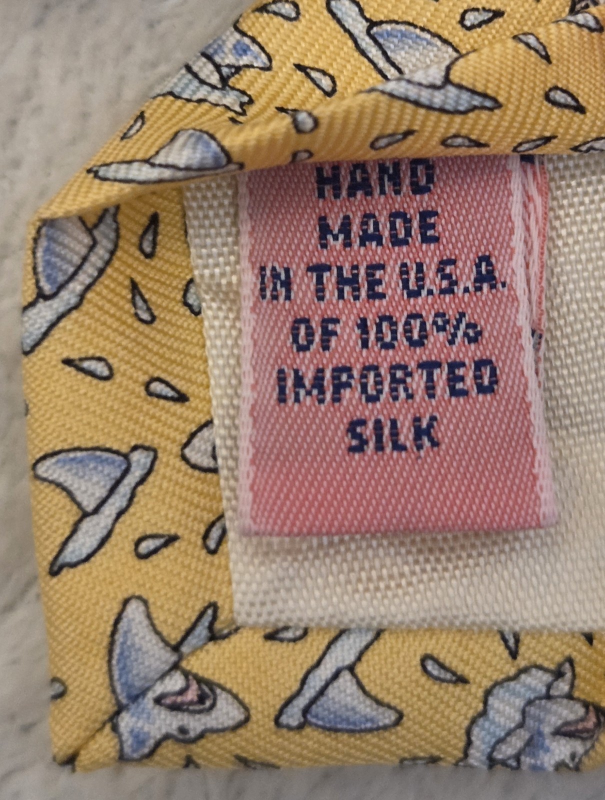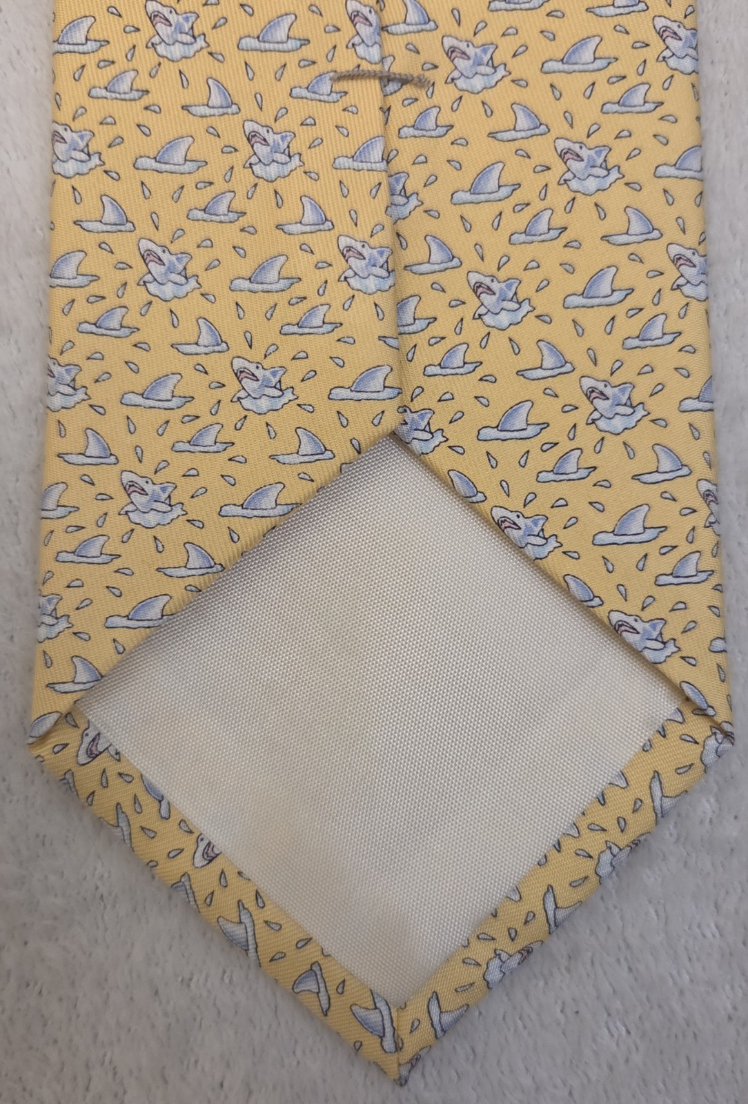 Vineyard Vines Tie Mens Yellow Geometric Shark 100 Silk Hand Picked Shep Ian