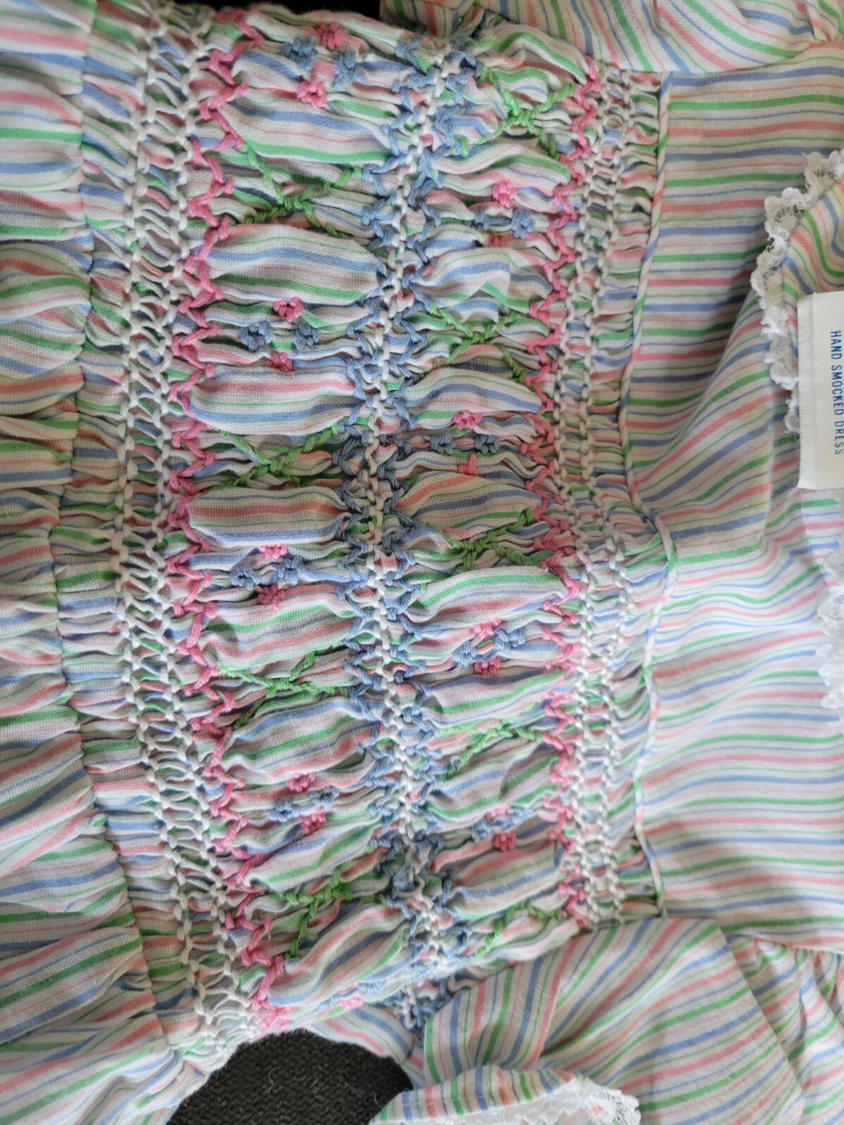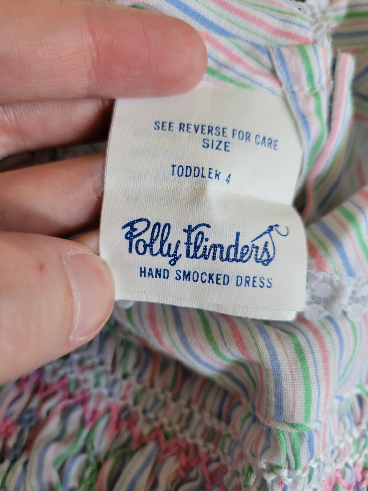 Polly Flinders Smocked Girls Dress Size 4 Pastel Stripes Easter