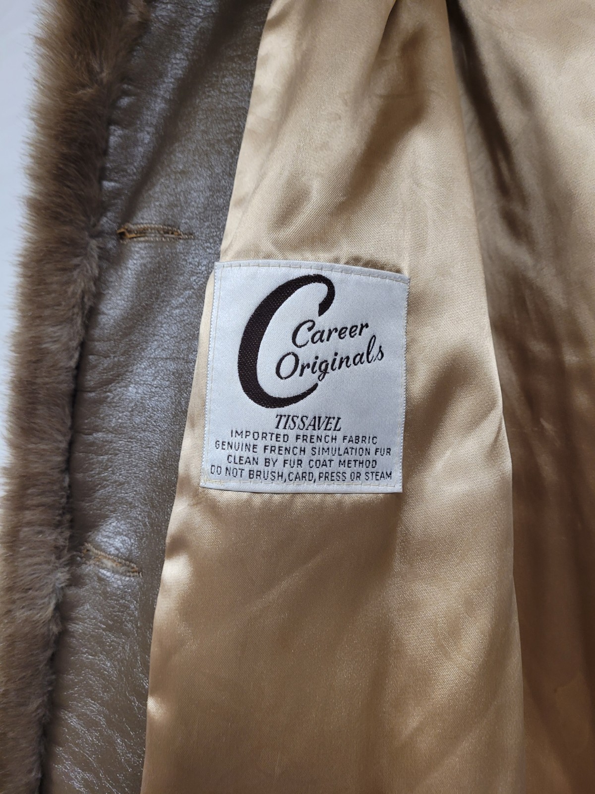 VINTAGE FAUX FUR COAT MINK TISSAVEL FRANCE PINUP OLD HOLLYWOOD GLAM LARGE XL