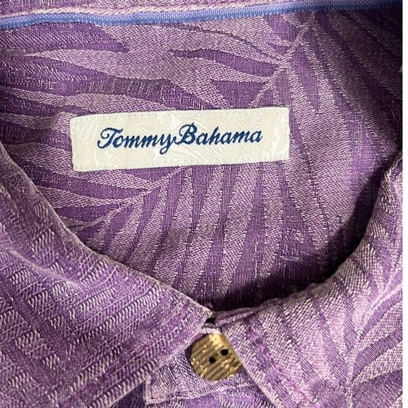 как выглядит mens purple XL Tommy Bahama tropical printed shirt good condition фото