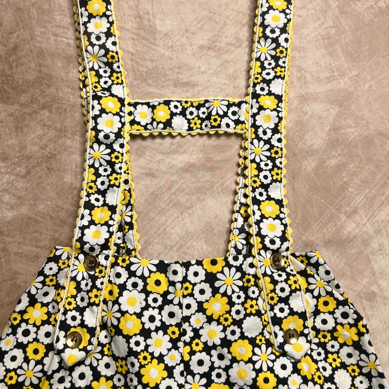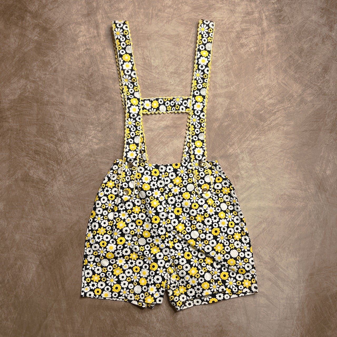 Vintage 60s Bobbie Brooks Pop Art Floral Print Lederhosen Overall Shorts Mod