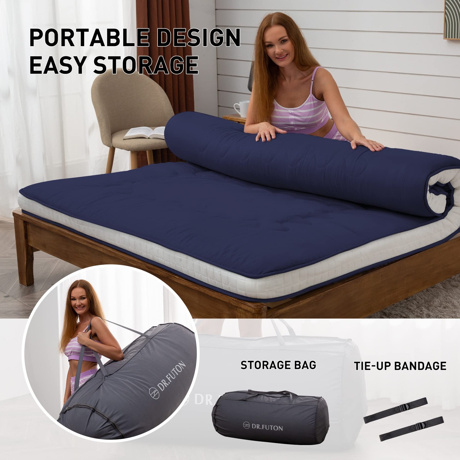 как выглядит Japanese Floor Futon Mattress Extra Thick Folding Roll Up Bed Topper Mat for ... фото