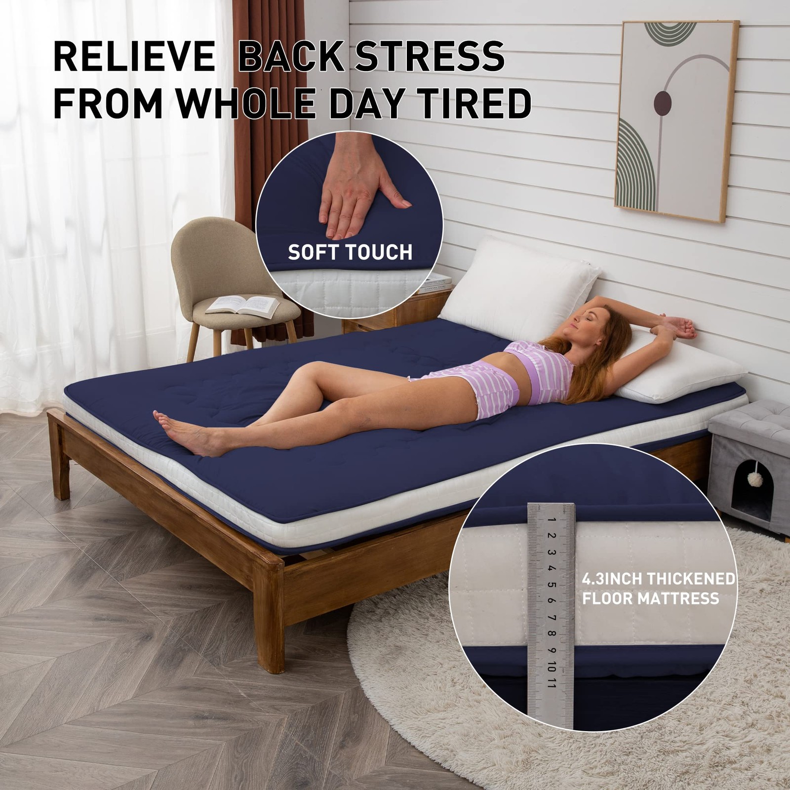Japanese Floor Futon Mattress Extra Thick Folding Roll Up Bed Topper Mat for ...