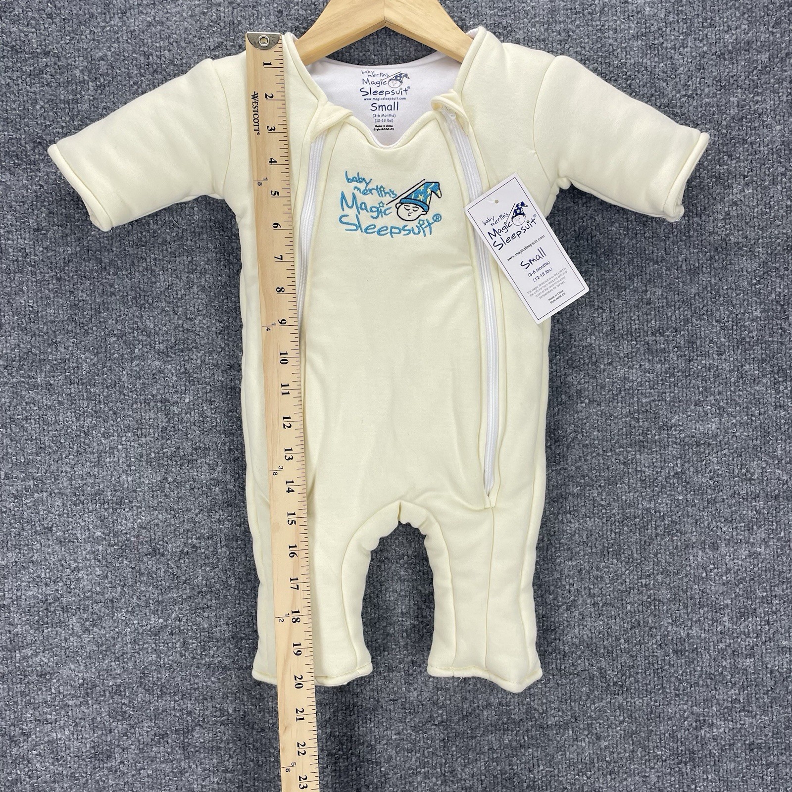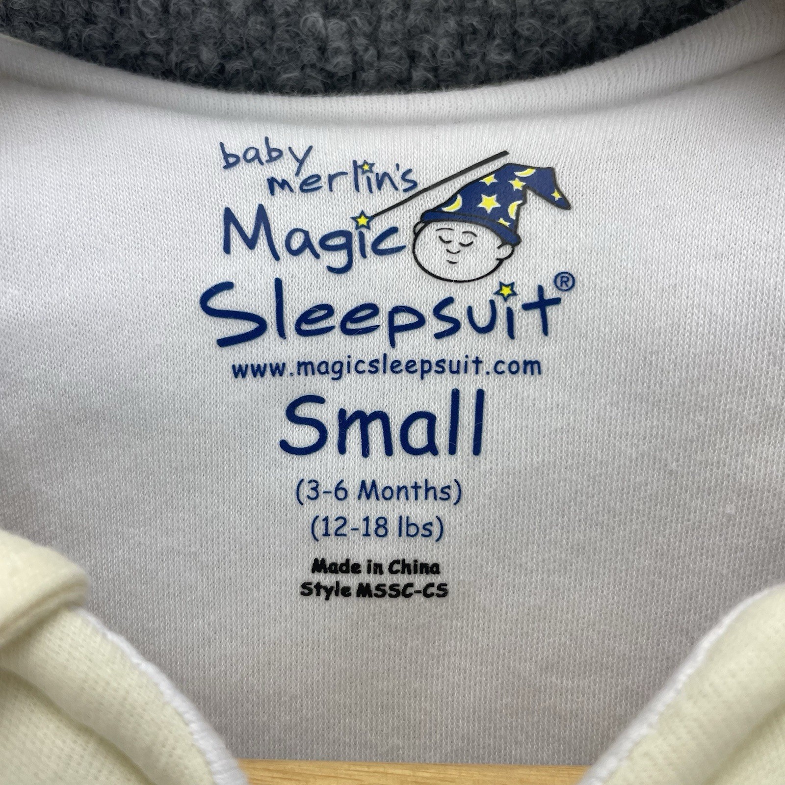 Baby Merlin s Magic Sleepsuit 3-6 Months 12-18lbs Small Beige White Cotton NWT