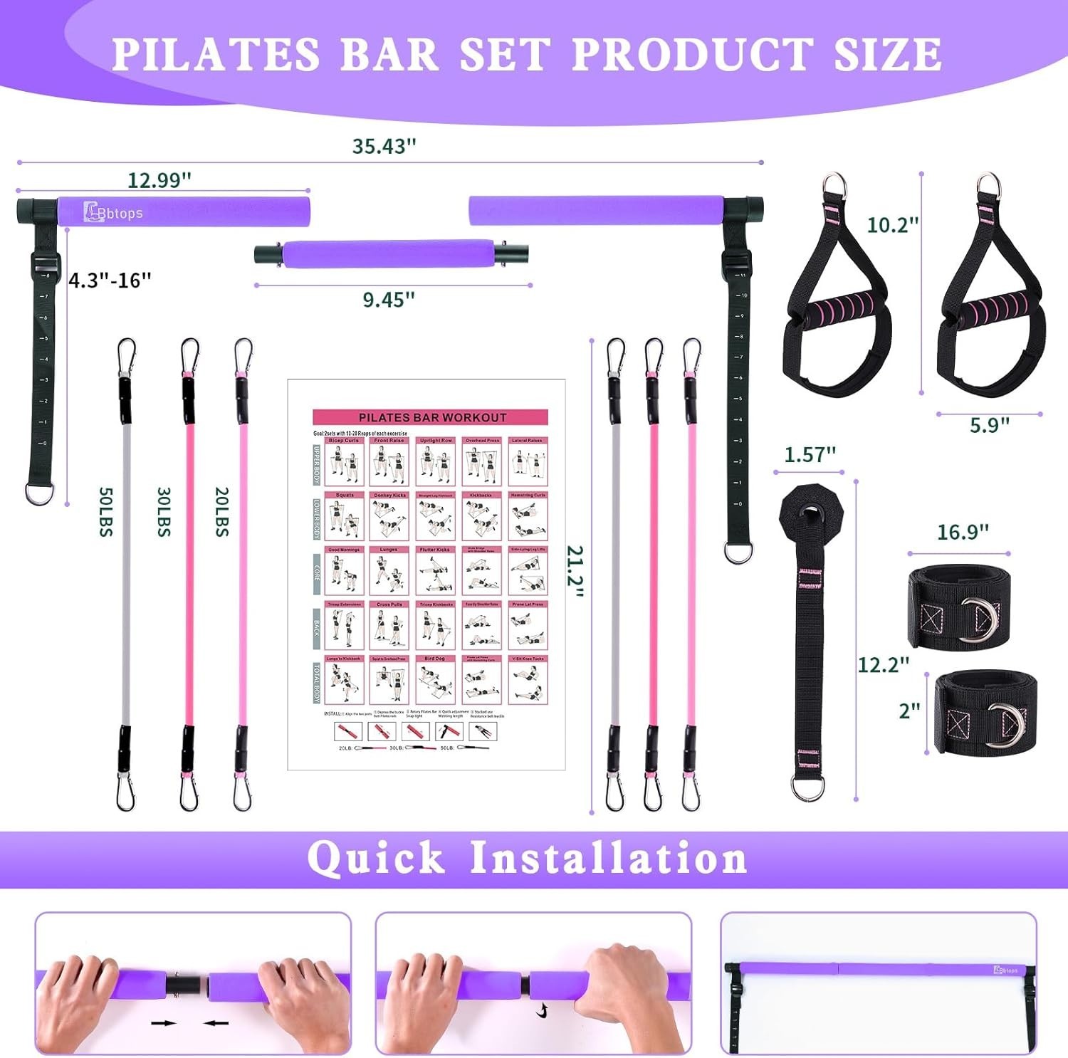 Pilates Bar Kit with Resistance Bands,Pilates Bar with Stackable Bands Workou...