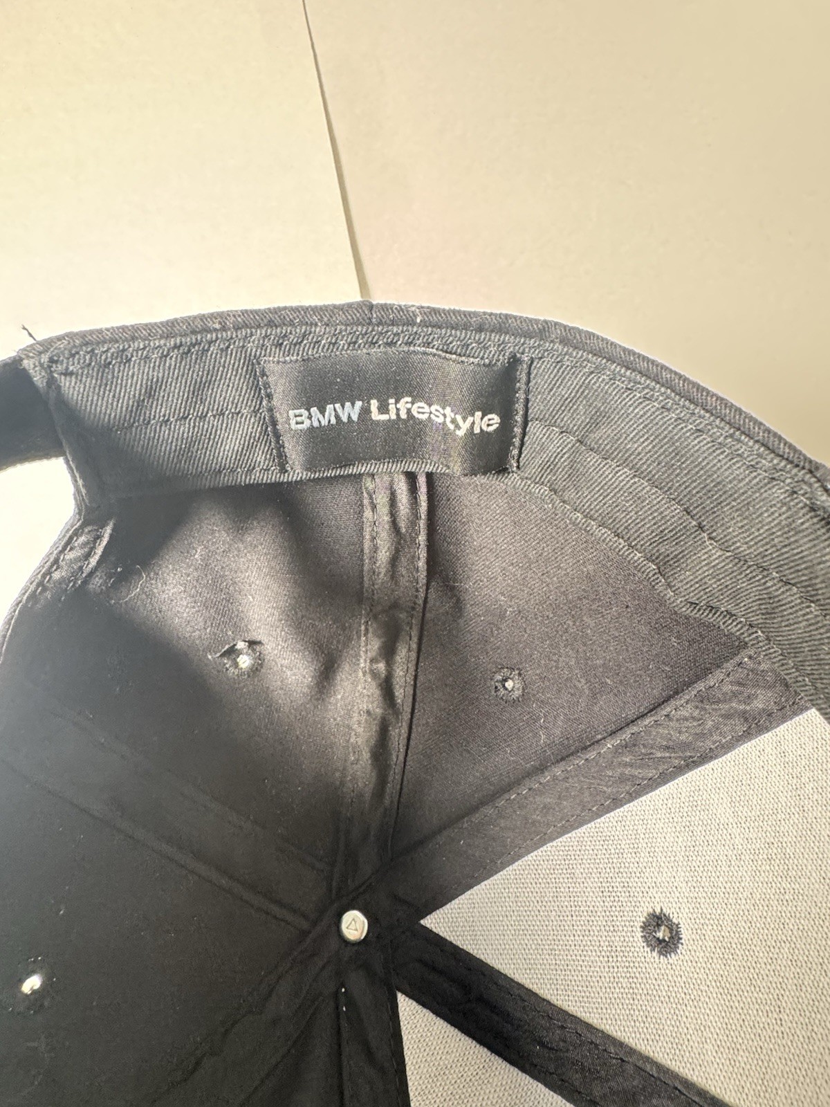 как выглядит Pre Owned Good BMW Lifestyle Adjustable Hook Loop Black Hat Cap Embroidered фото