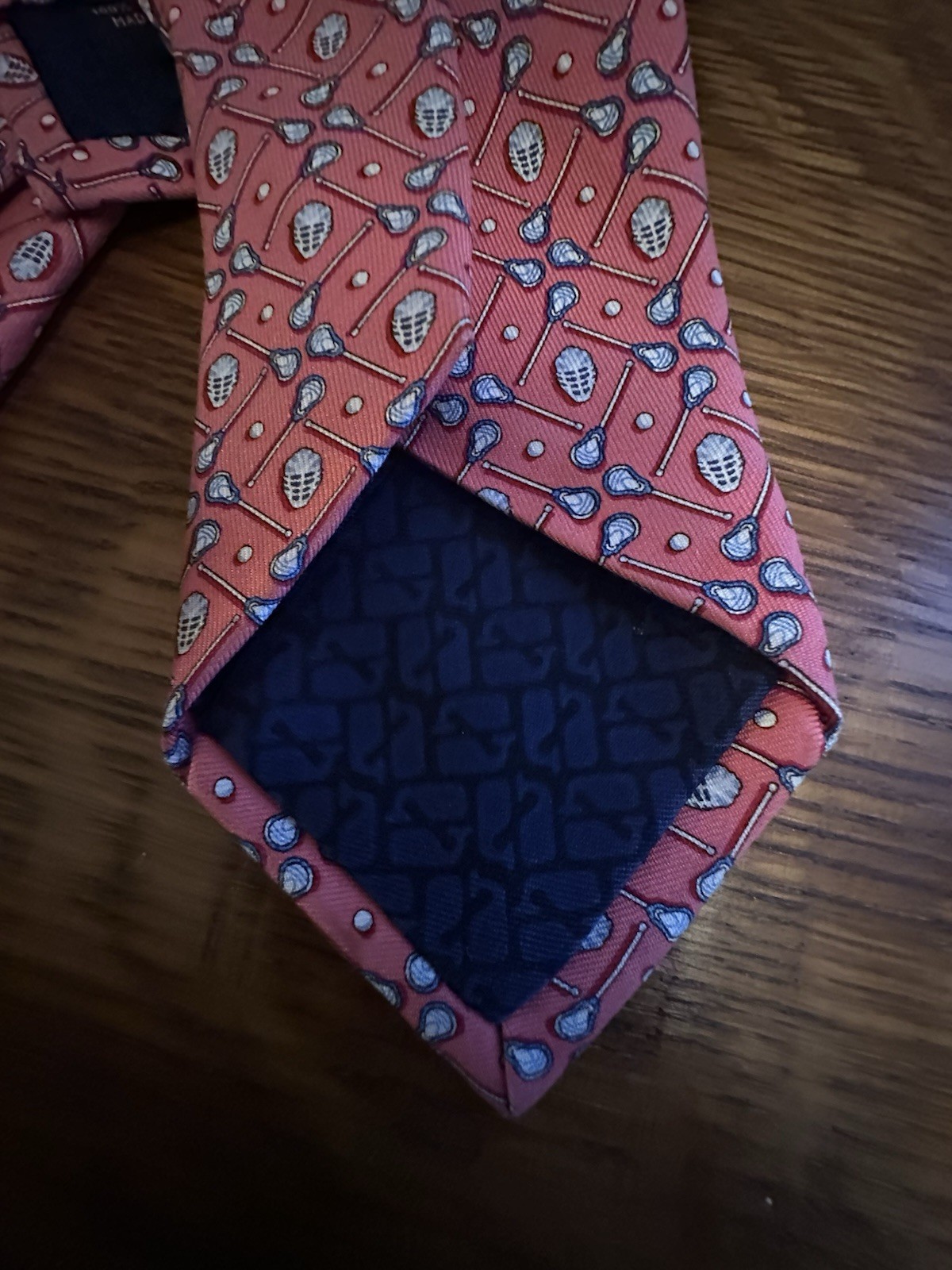 как выглядит Vineyard Vines Boys 100 Silk Tie LAX Lacrosse Sticks Pink With Blue EUC фото