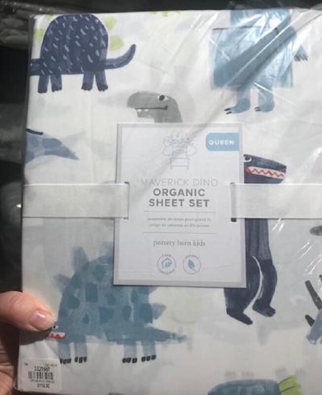 как выглядит Pottery Barn Maverick Dinosaur Sheet Set Blue Queen Dino TRex Kids 4p New фото