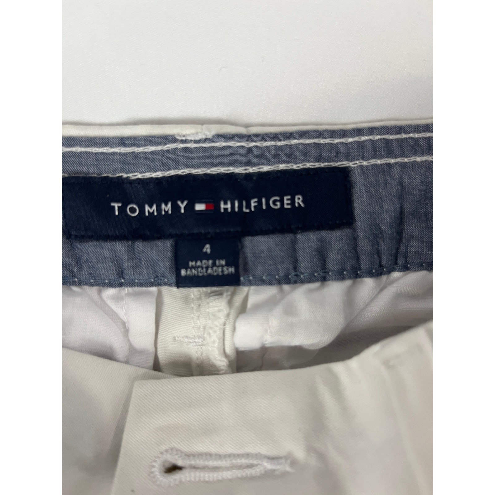 как выглядит Tommy Hilfiger Hampton Stretch Slim Chino Pants Size 4 White Logo Print фото