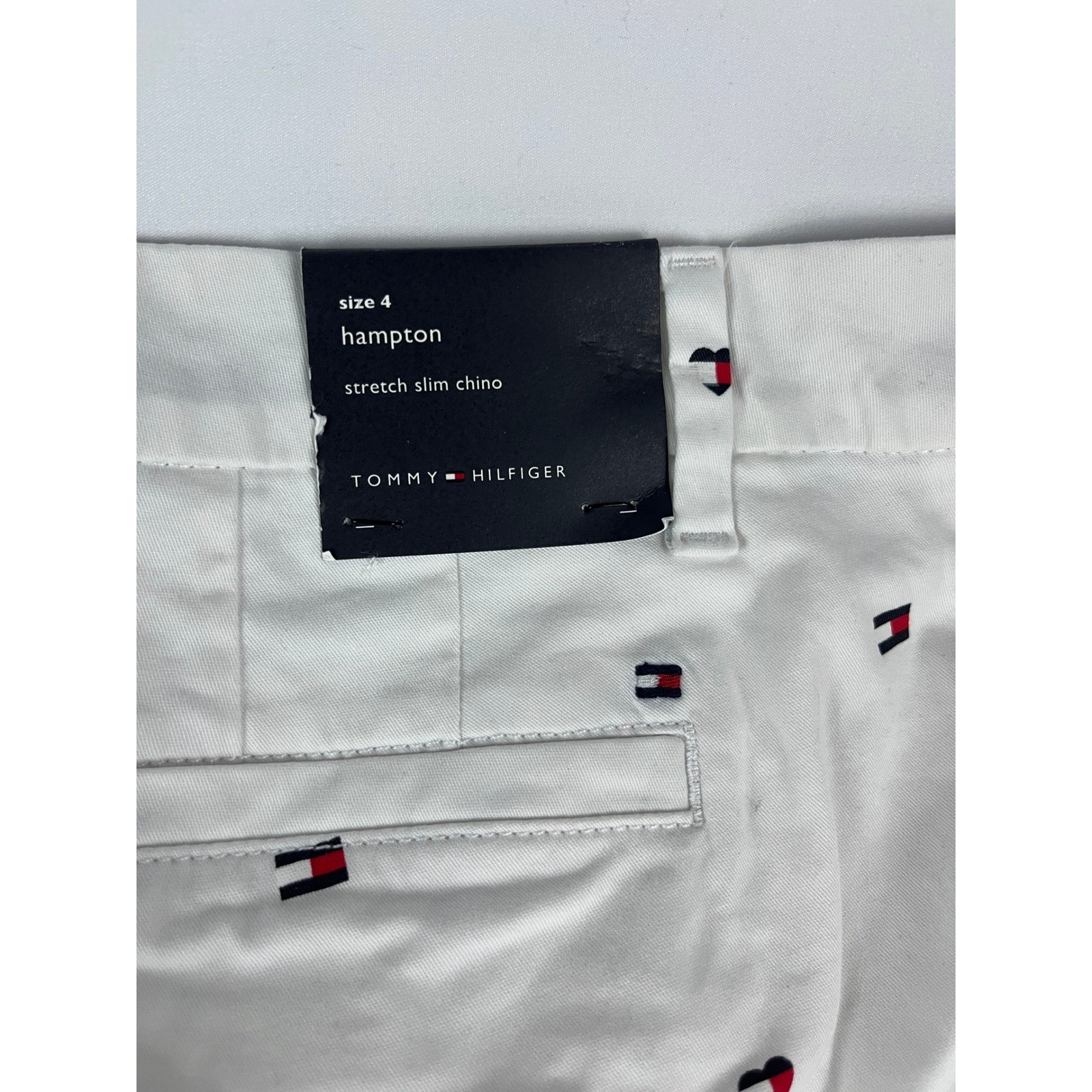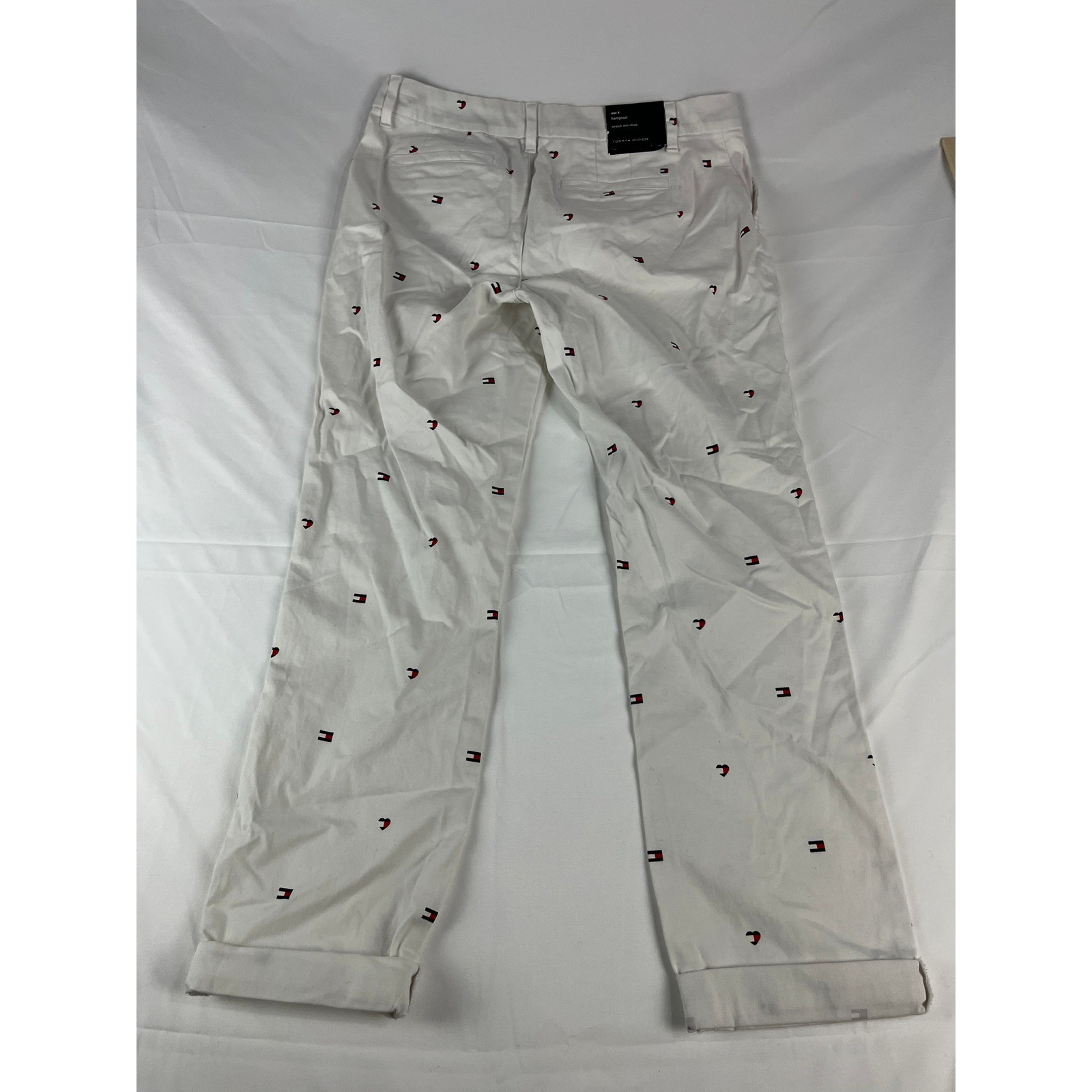 Tommy Hilfiger Hampton Stretch Slim Chino Pants Size 4 White Logo Print