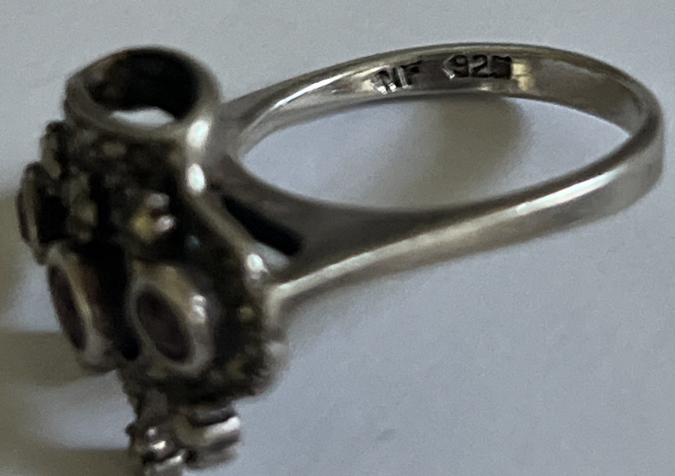 как выглядит STERLING SILVER GARNET CROWN PRINCESS WITH MARCASITES RING 925 SIZE 6 фото