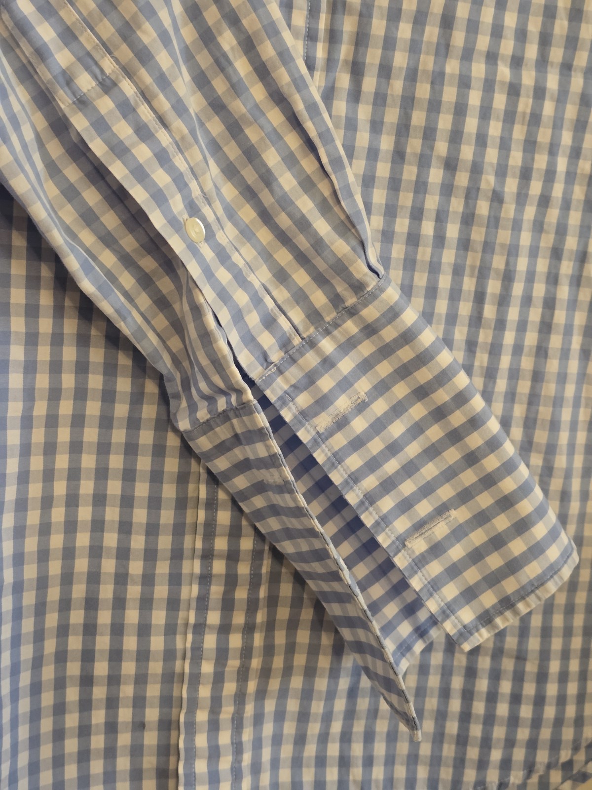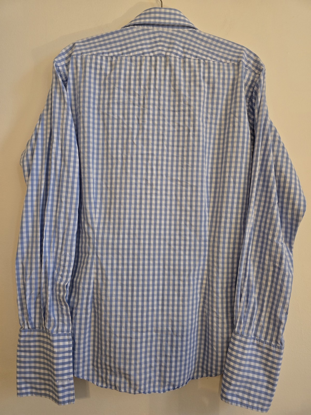 как выглядит tm lewin shirt men Lt Blue Gingham French Cuff 16 Slim Cotton Button Down фото