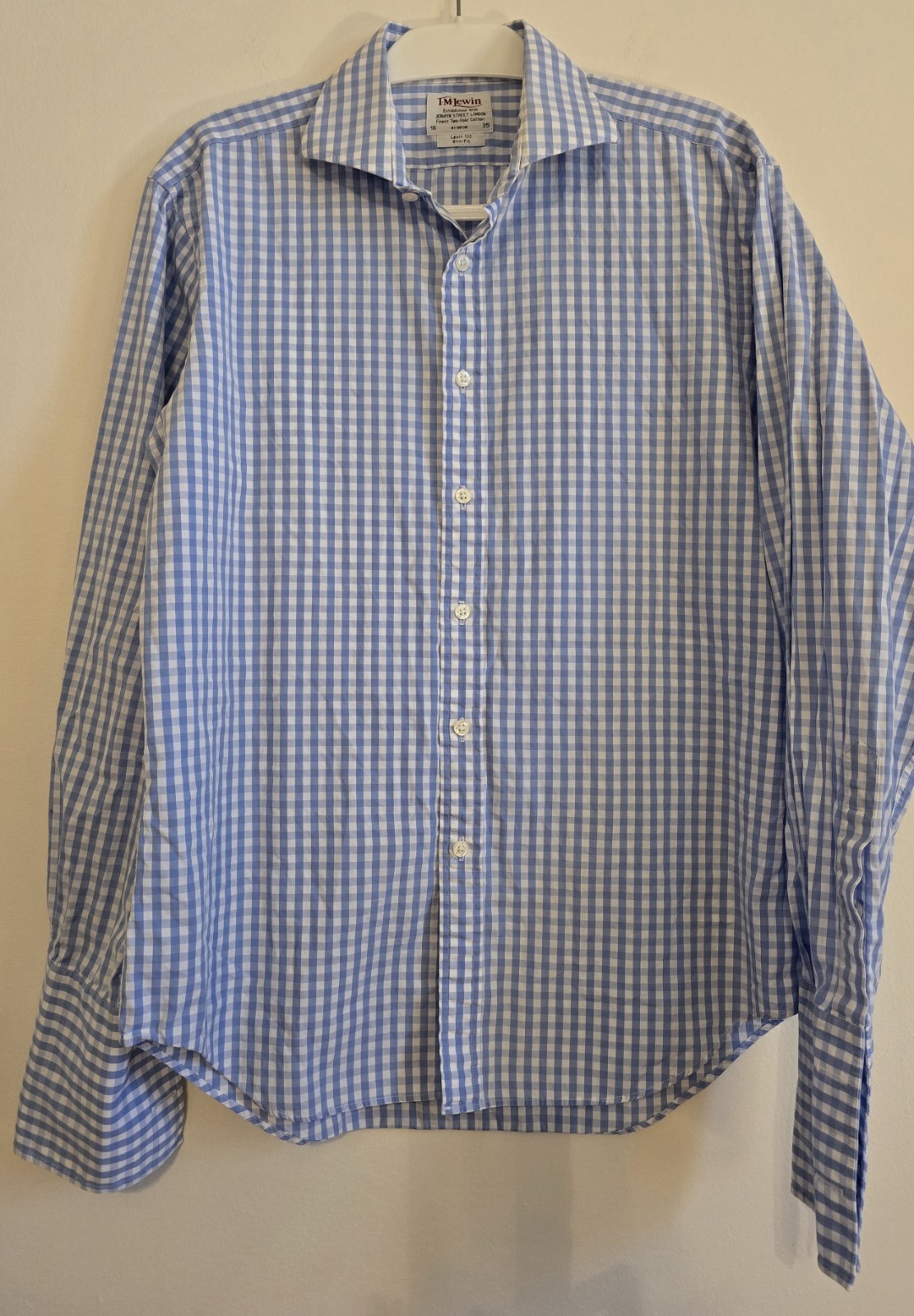 tm lewin shirt men Lt Blue Gingham French Cuff 16 Slim Cotton Button Down