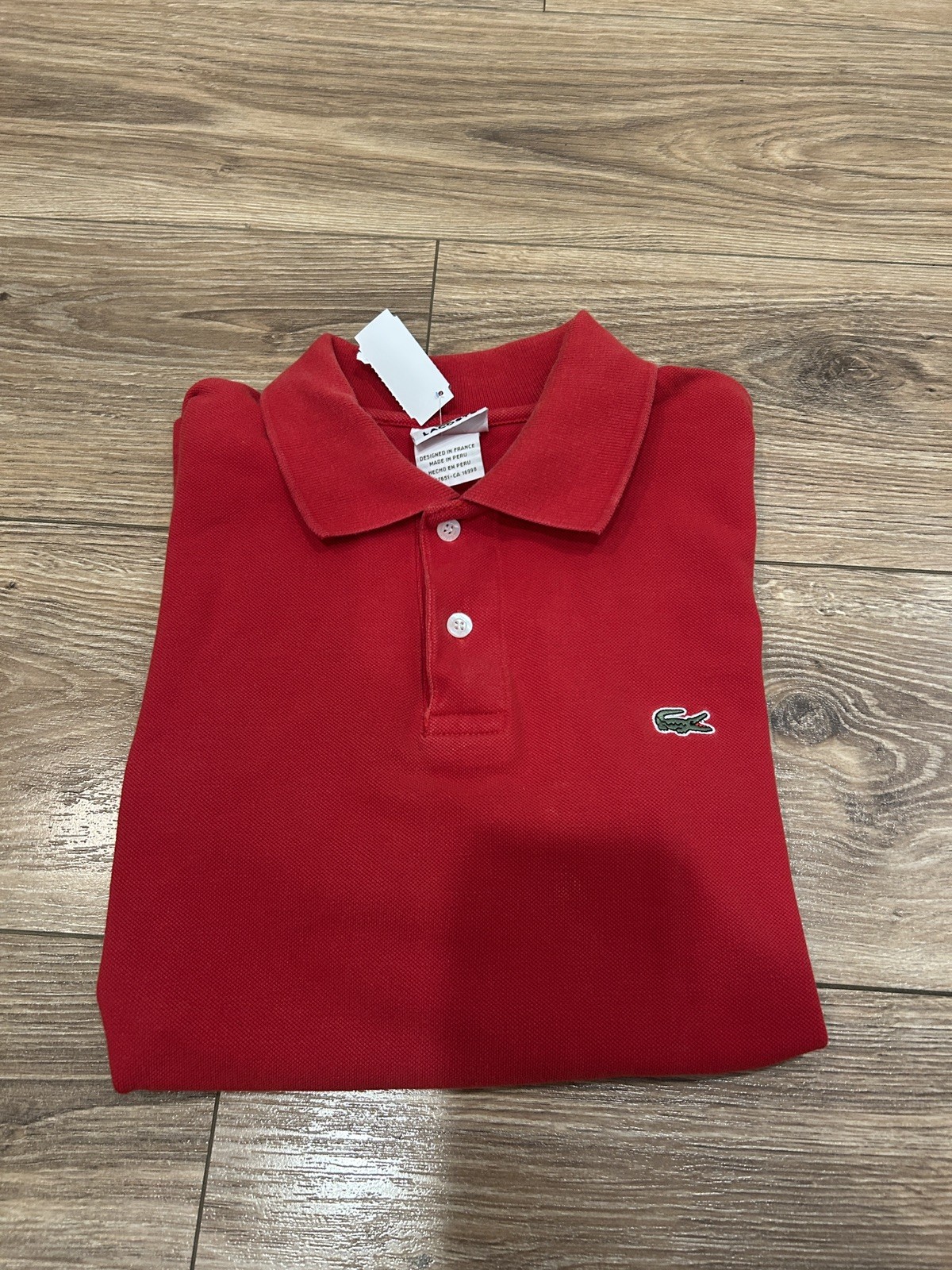 LACOSTE Classic Fit Polo Shirt Red Pique Cotton Men's SMALL
