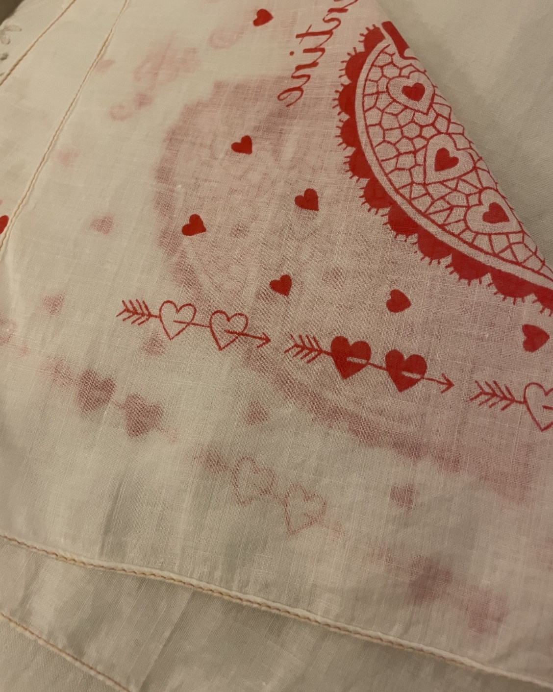 Vintage Be My Valentine Red Heart MCM Handkerchief Hankie - EUC