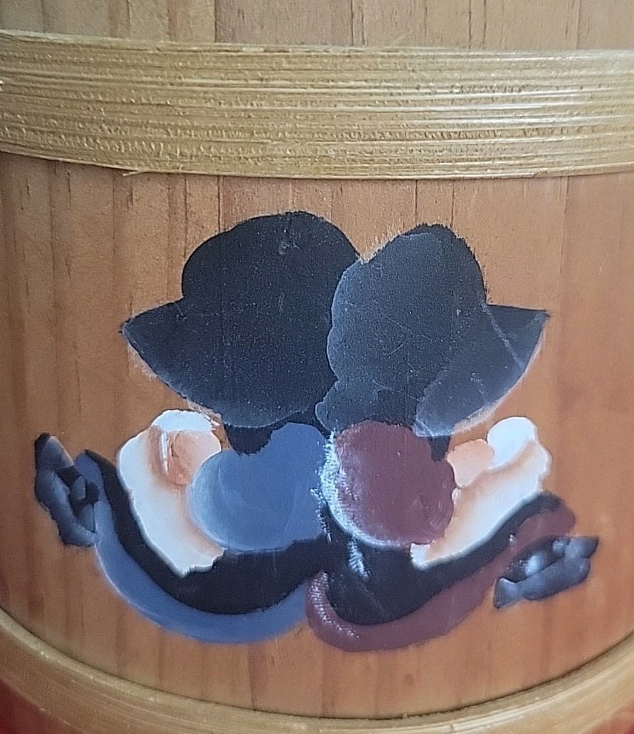 как выглядит Handcrafted Wood Bucket Rope Handle Hand Painted Brother And Sister Signed фото
