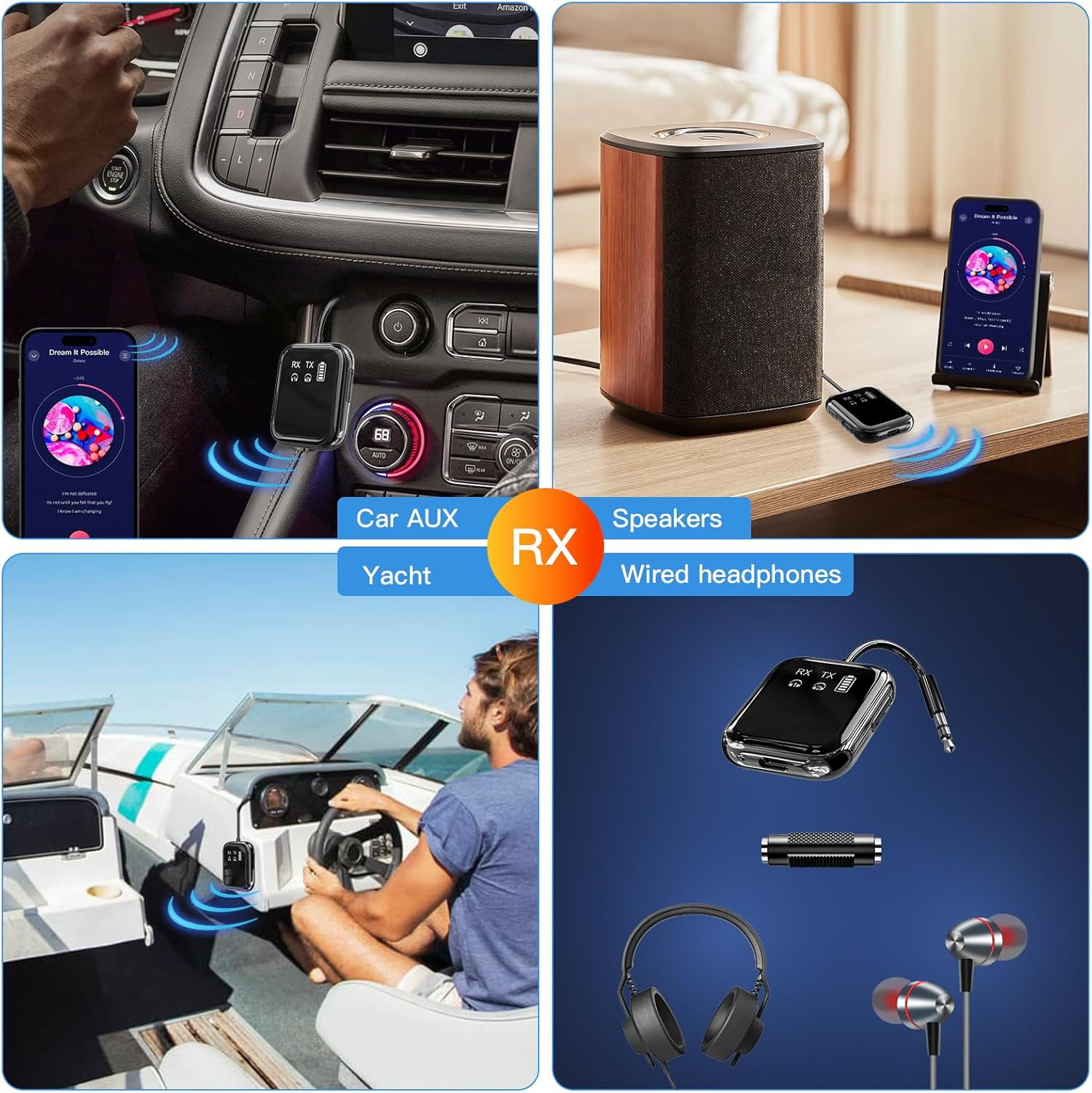 Bluetooth 5.4 Transmitter Receiver, Low-Latency for Gaming/Tv/Pc/Gym,2-In-1 Dual