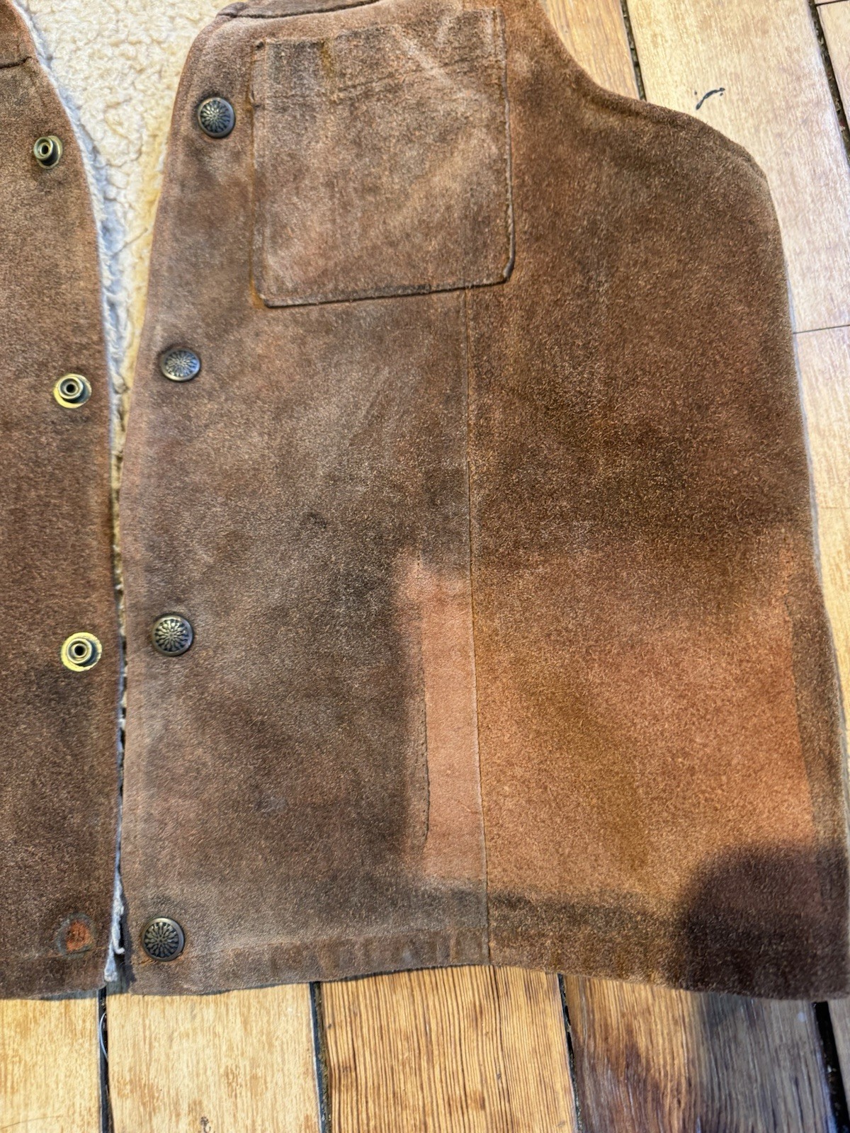 как выглядит Vintage Shearling Suede Vest Men s Medium фото