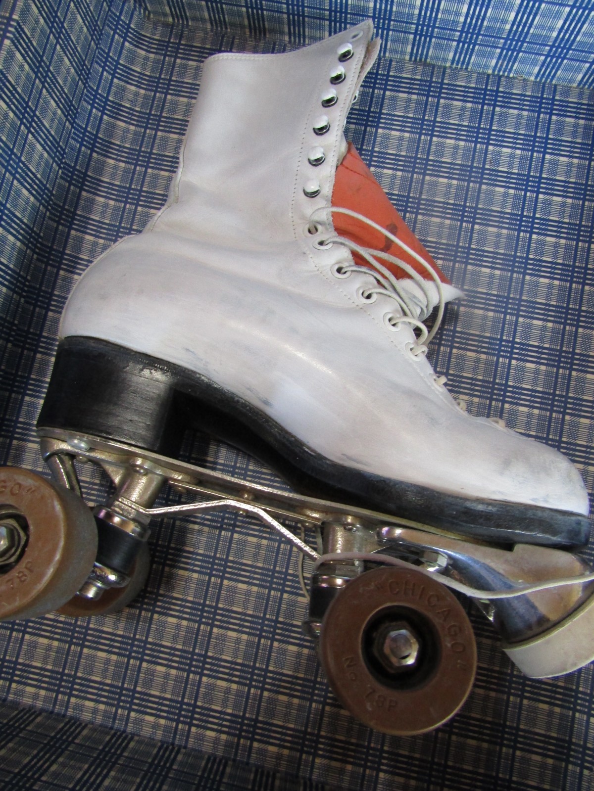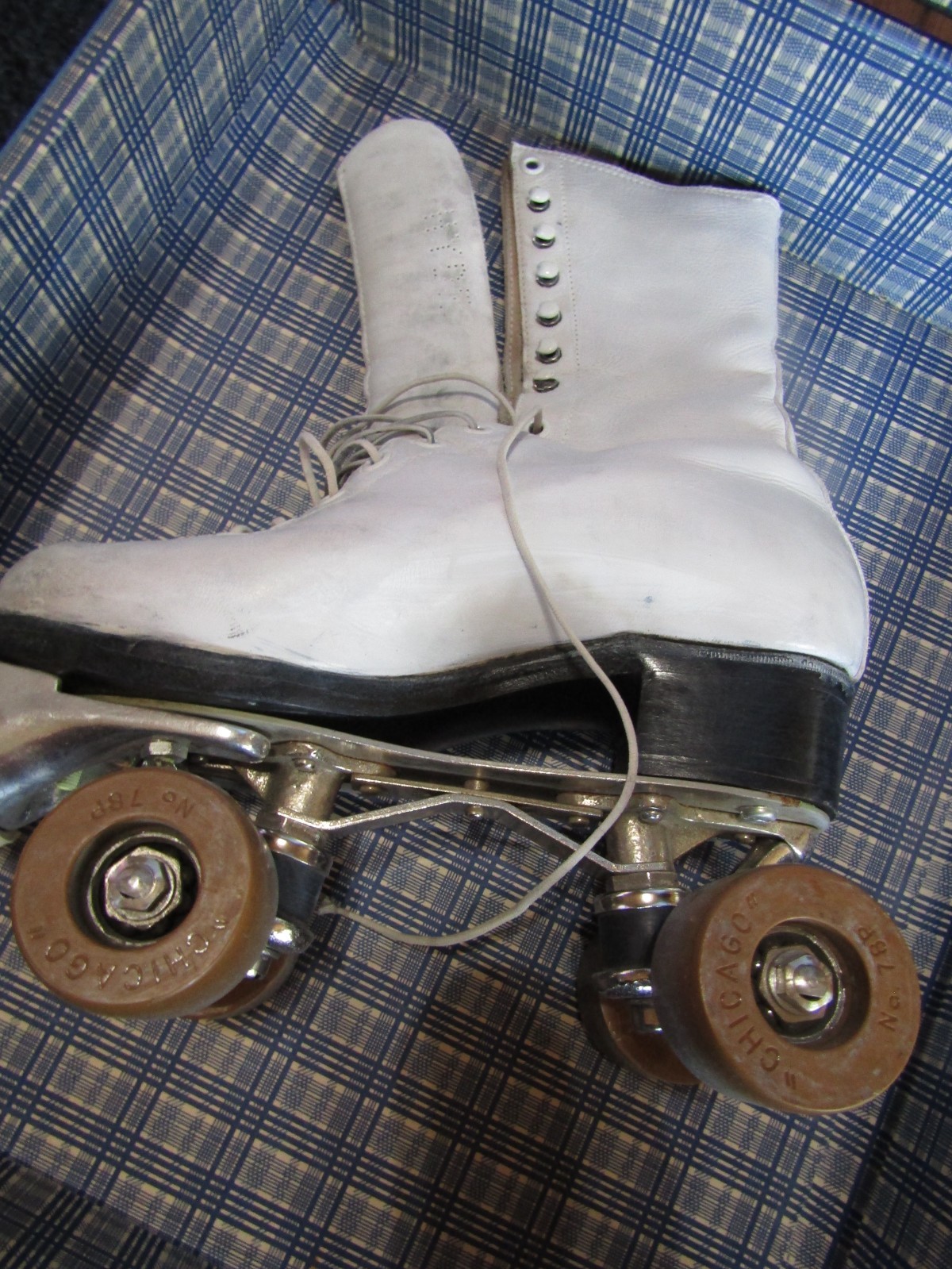HYDE Vintage WHITE Leather CHICAGO ROLLER SKATES w/CUB CASE KEYS-Size 5-1960's