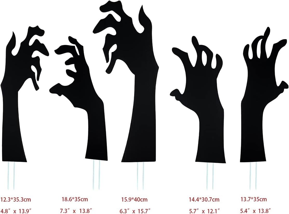 5 Pack Halloween Black Hands Yard Signs with Stakes Scary Silhouette Hallowee...
