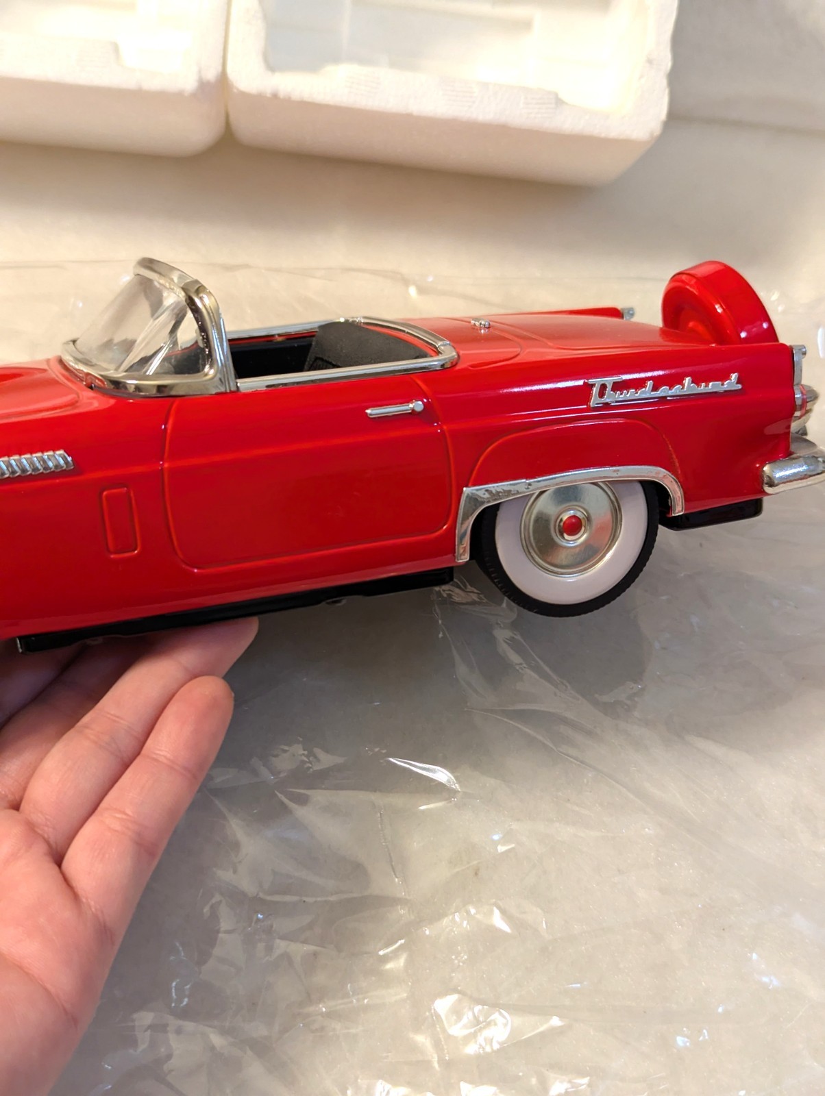 как выглядит Fifties 1956 Ford Thunderbird Convertible Tin Friction Toy Model RED002720 фото