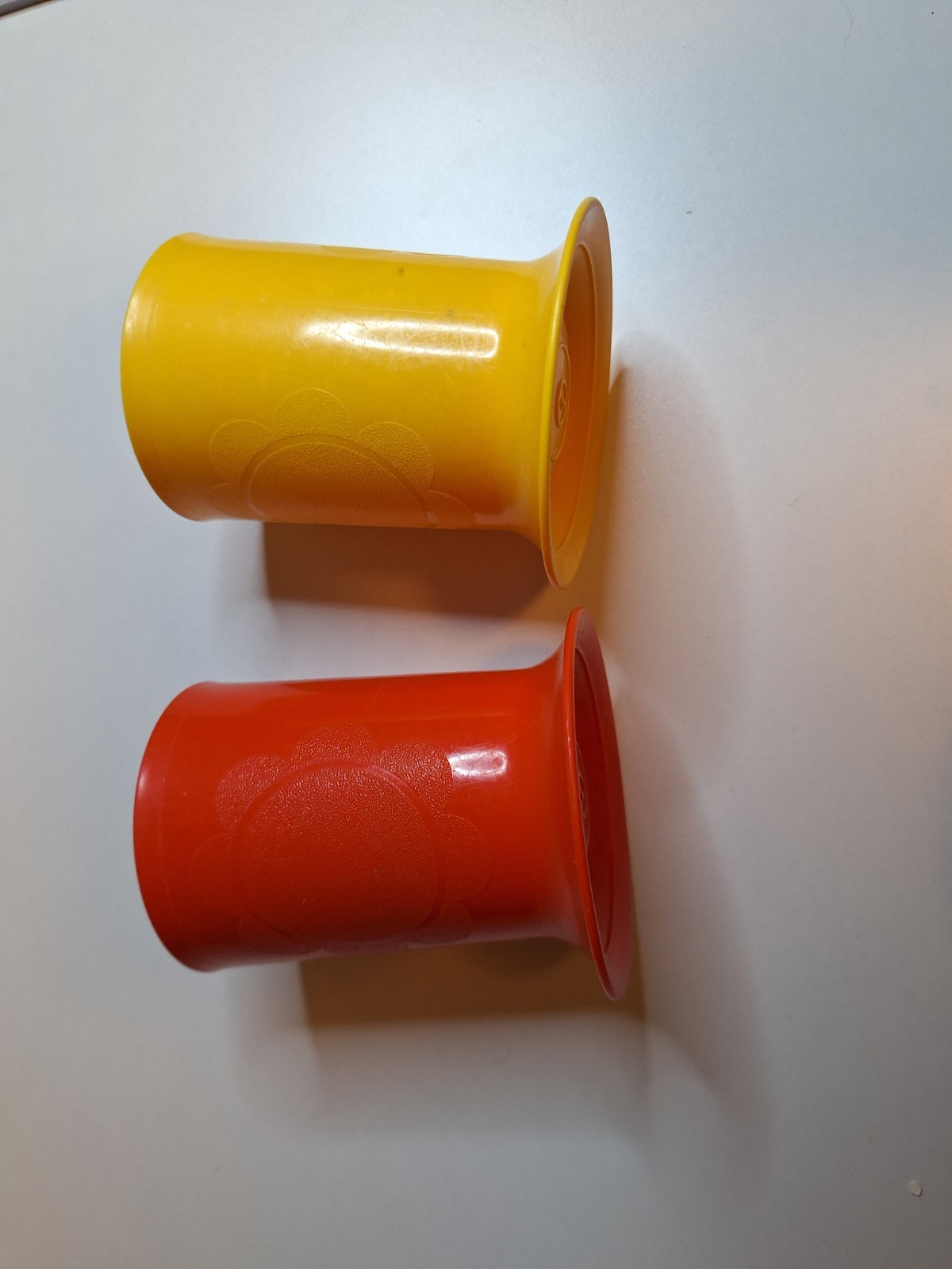 • Vintage Tupperware Footed Flower Sippy Cup Lot Of Two Orange/ Yellow - No Lids