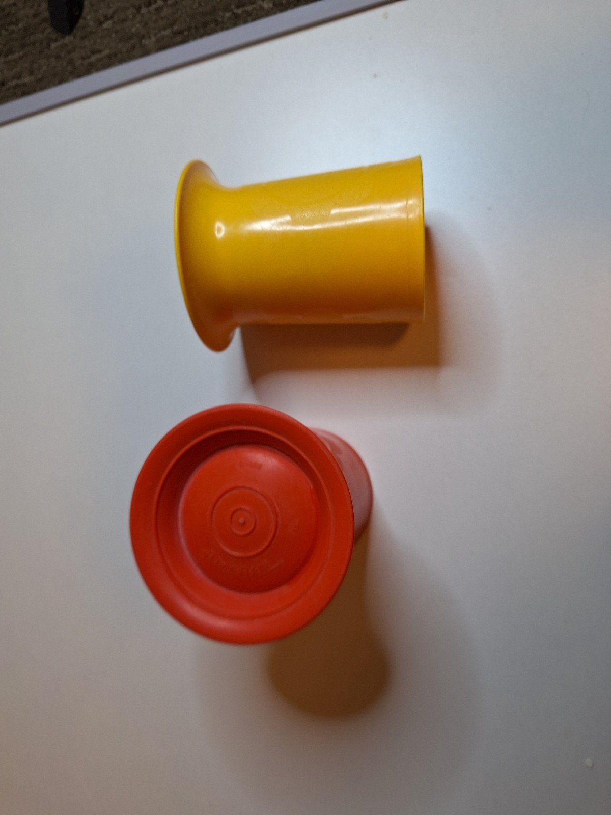 как выглядит Vintage Tupperware Footed Flower Sippy Cup Lot Of Two Orange/ Yellow - No Lids фото