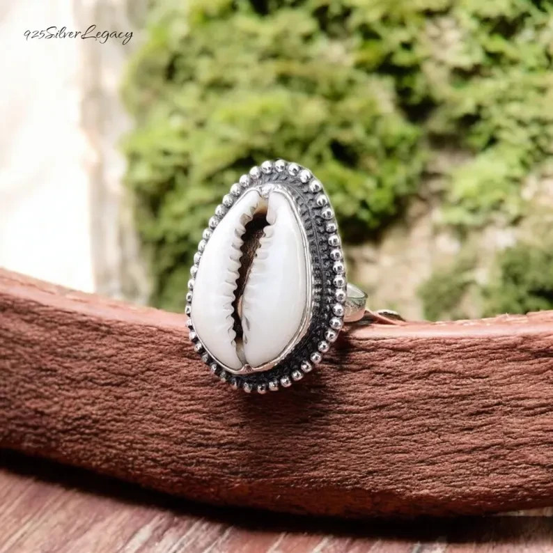 Cowrie Shell Designer Ring Handmade 925 Sterling Silver Engagement Jewellry Ring