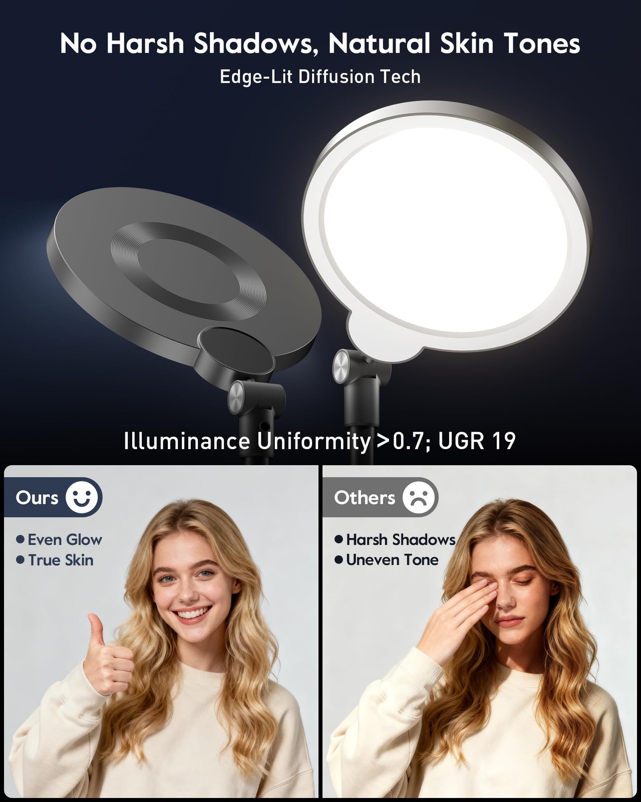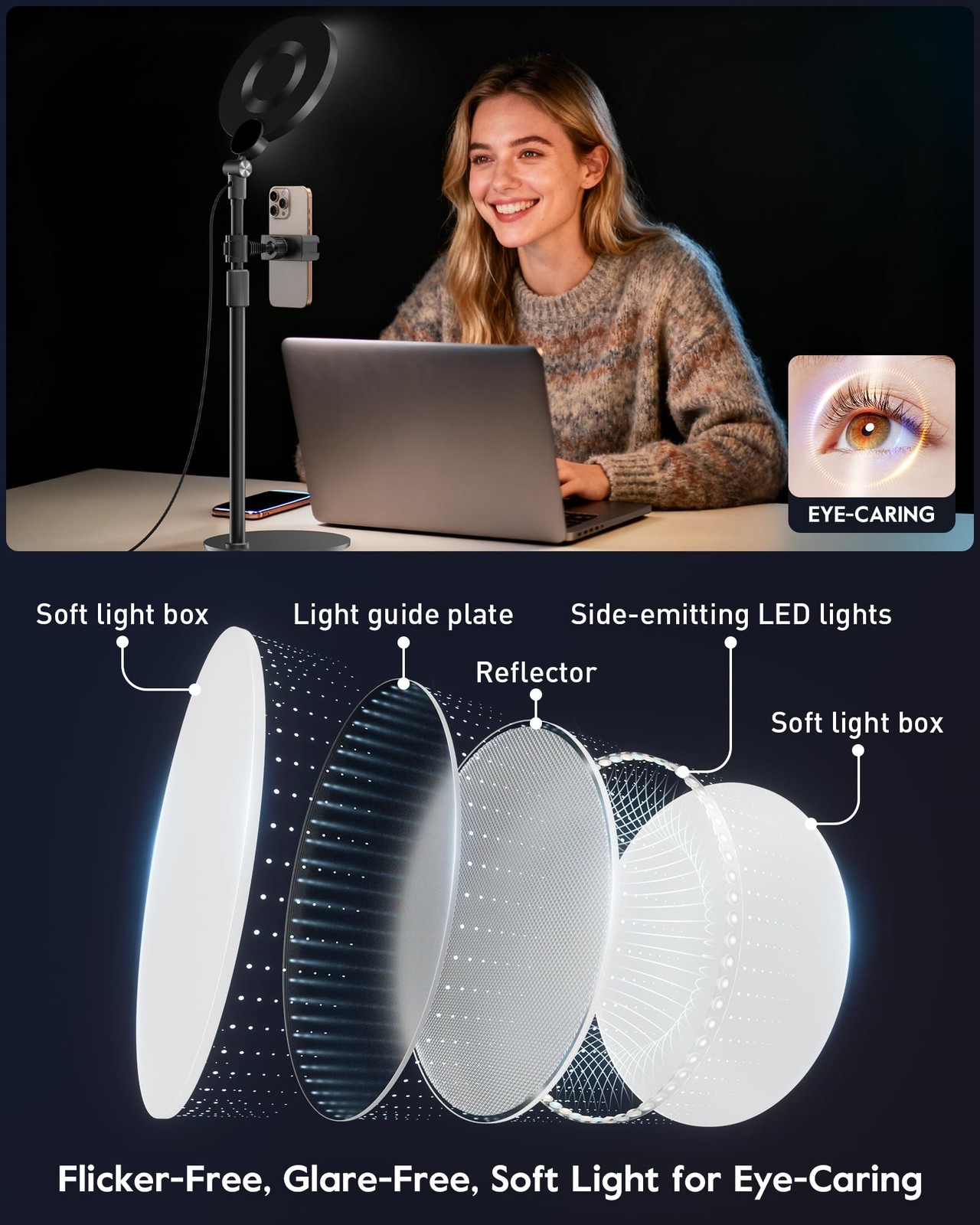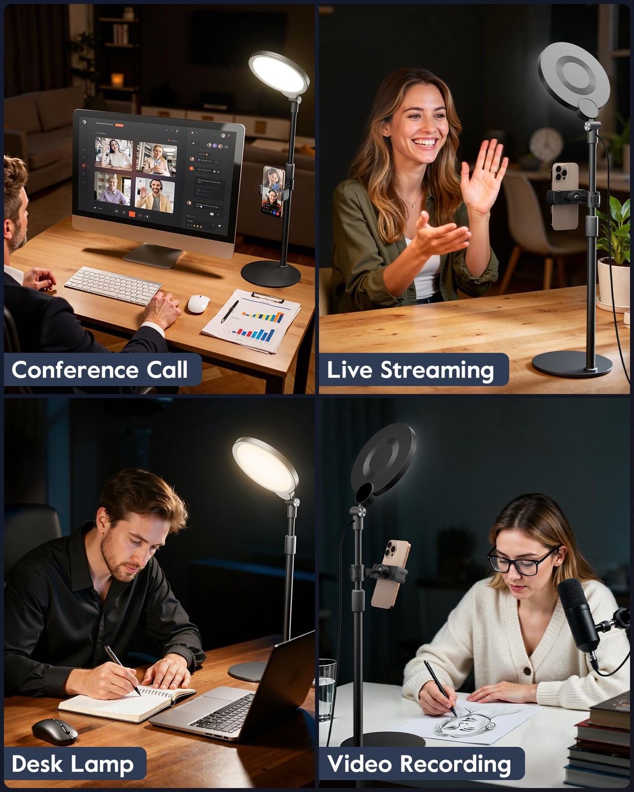 Dimmable Ring Light with Stand for Desk, Adjustable Desk Light for Video Reco...