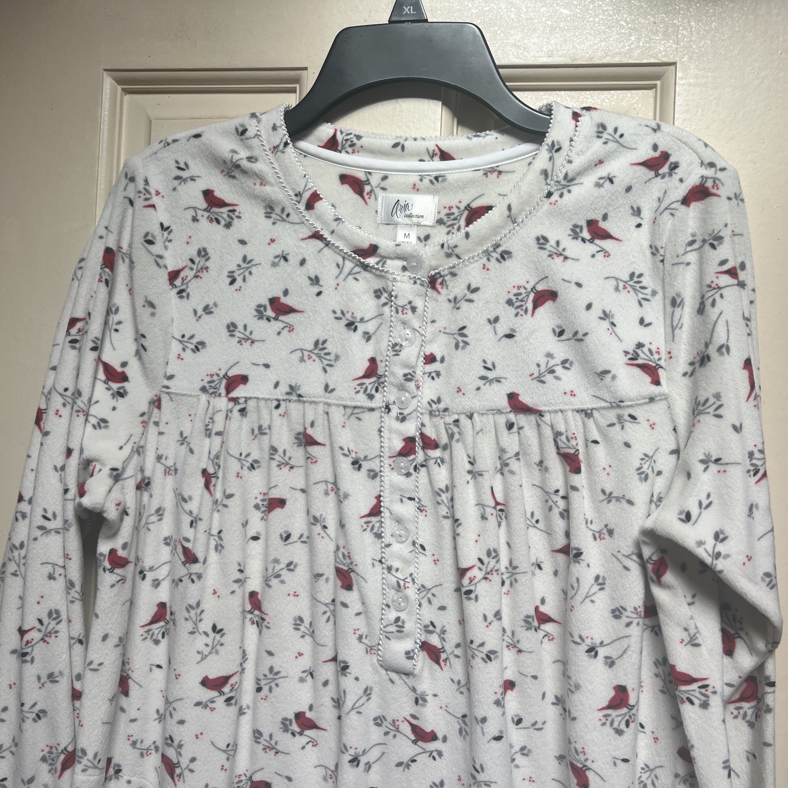 Aria Collection Cream Cardinal Floral Print LS Fleece Nightgown Sz M So Soft