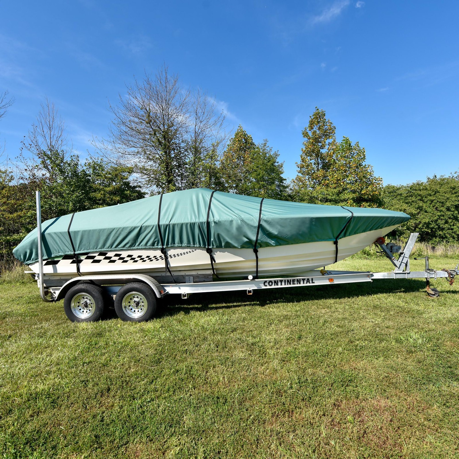 • Budge American Flagship Ripstop Boat Cover, Fits V-Hull Fishing Boats, Hunter Gr