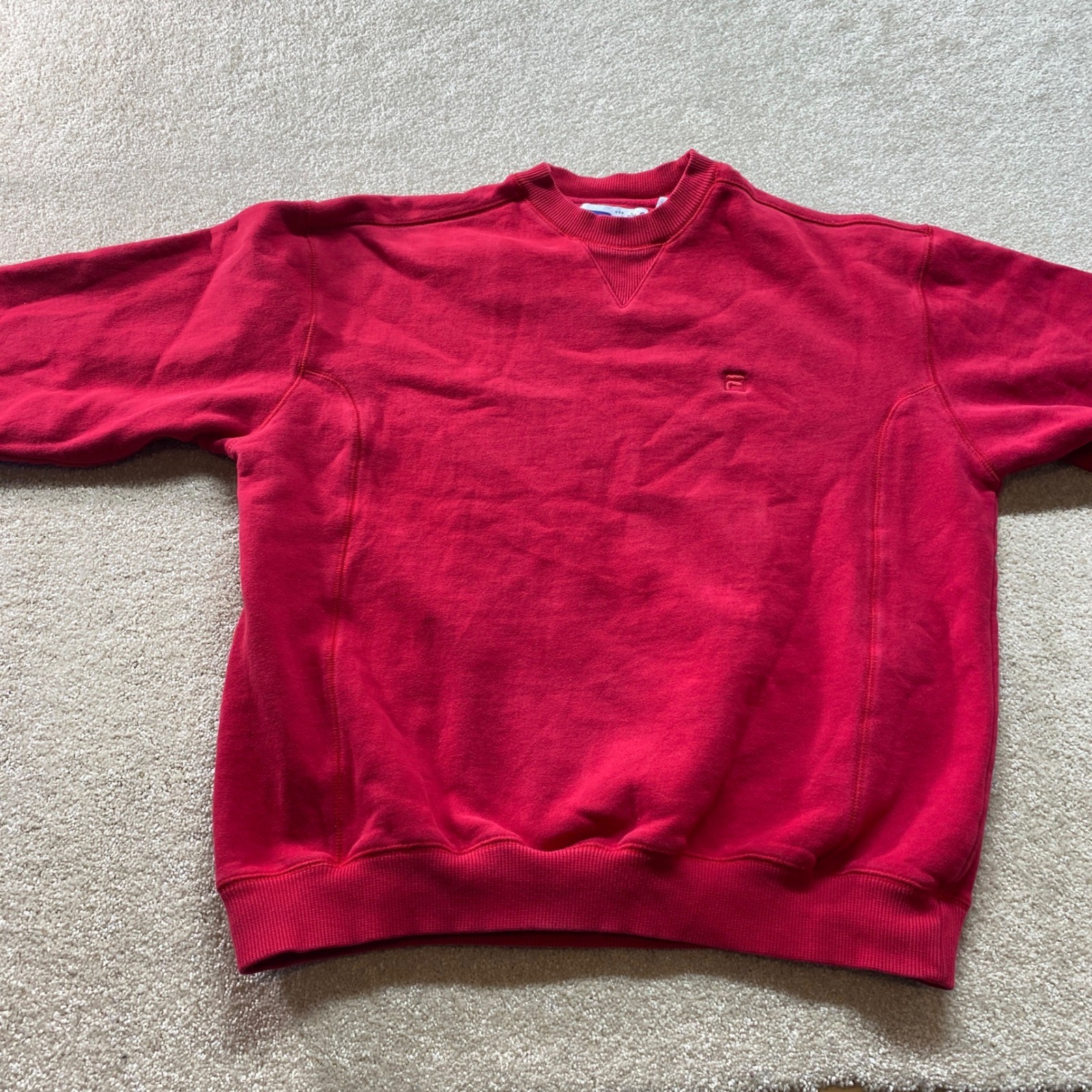 Fila Sweatshirt Mens Large Red Crewneck Small Logo Classic Comfort