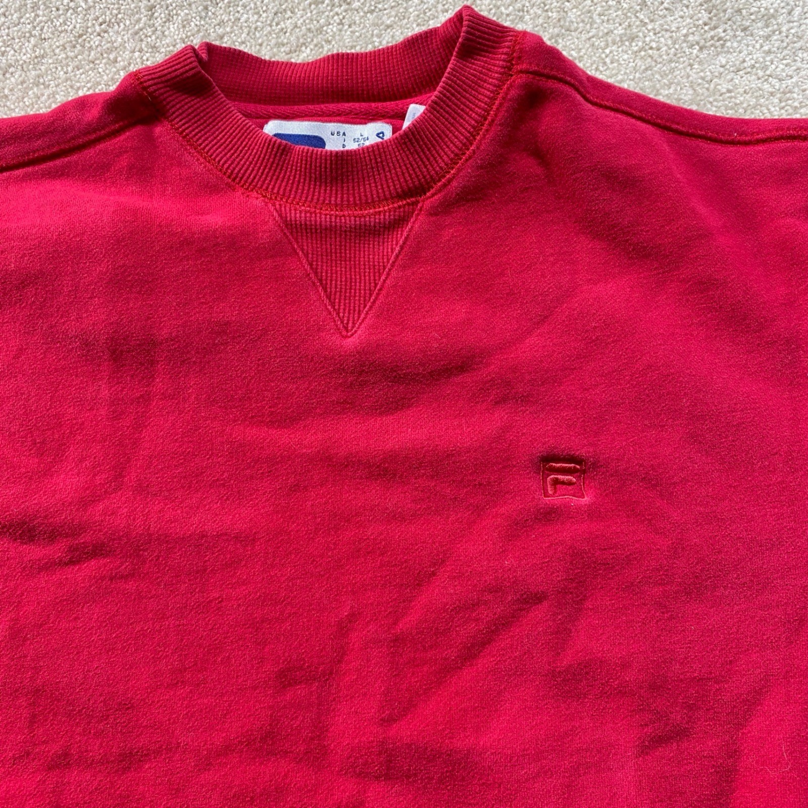 как выглядит Fila Sweatshirt Mens Large Red Crewneck Small Logo Classic Comfort фото