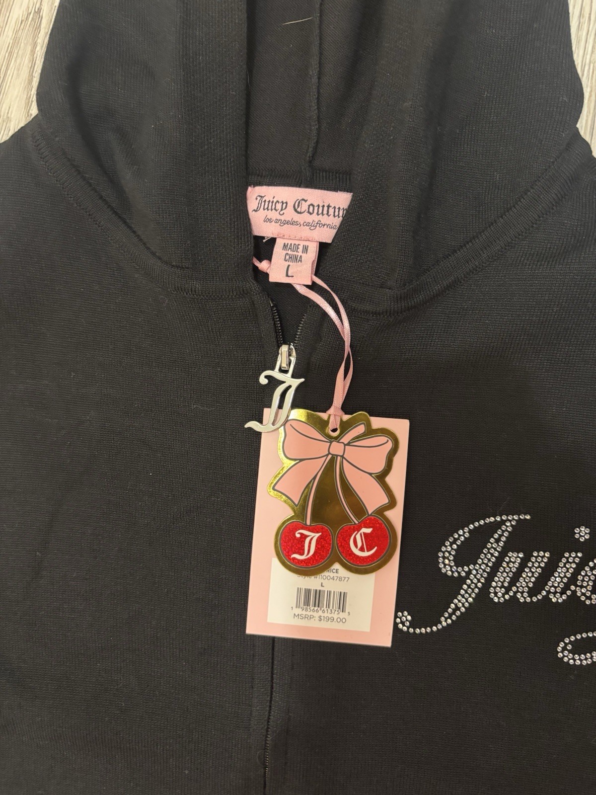 как выглядит Juicy Couture Black Knit Bling Rhinestone Track Suit Size L фото