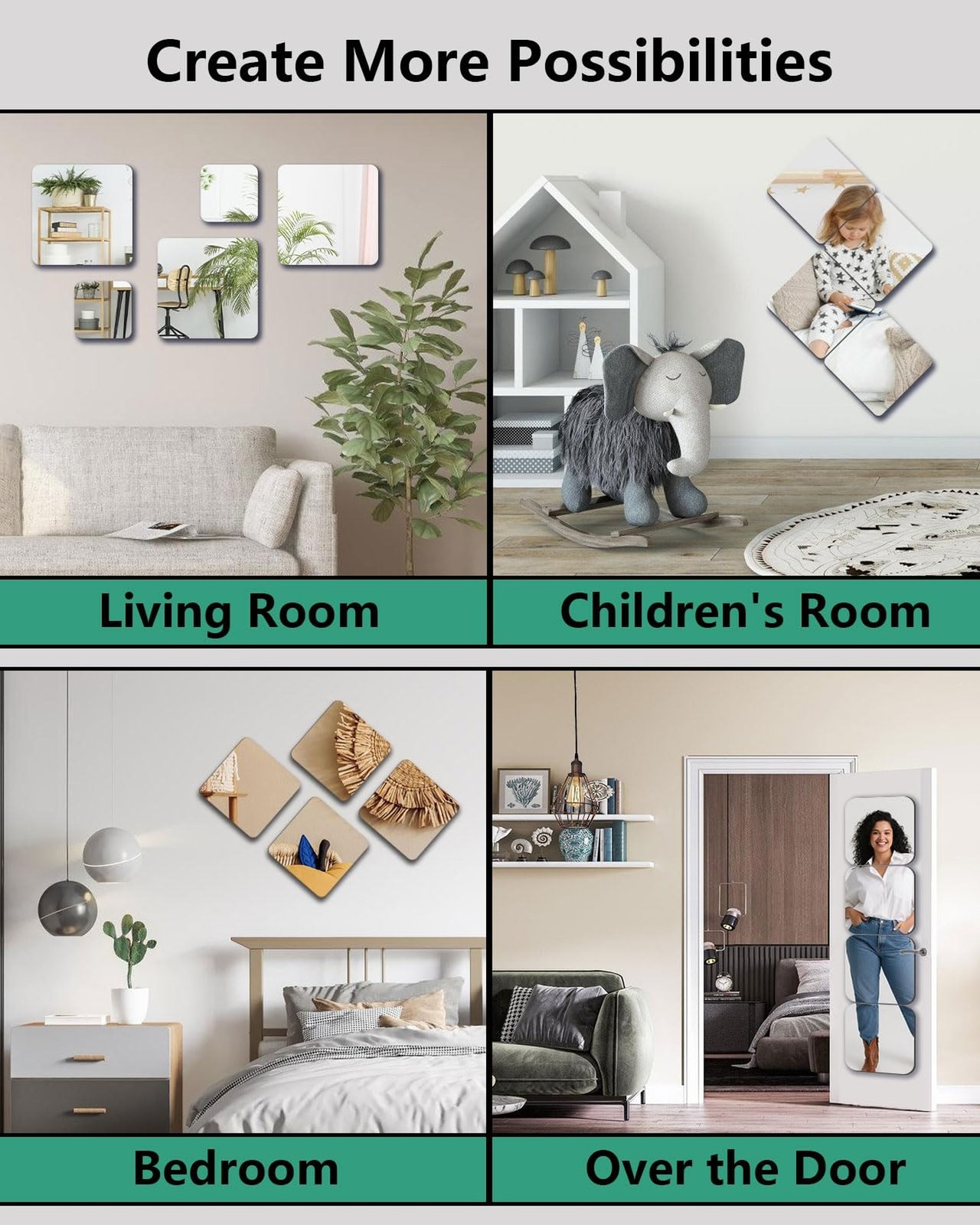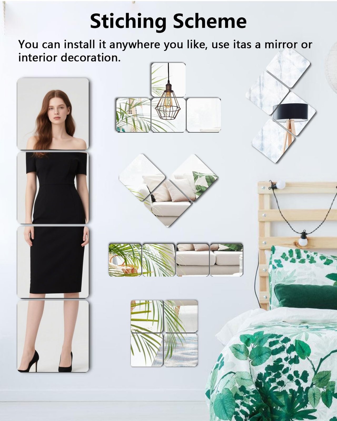 Shatterproof Peel and Stick on Mirror Tiles for Wall Decorative, 8 pcs 8 8221;x