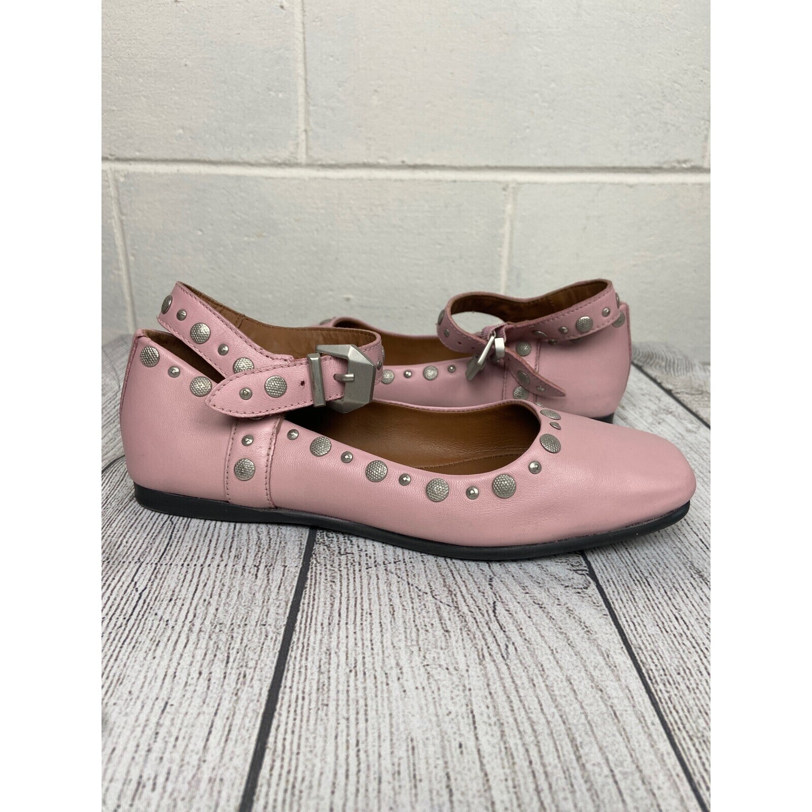 NWOB Free People Mystic Mary Jane Studded Flats Pink Leather Shoes EU37.5/W7
