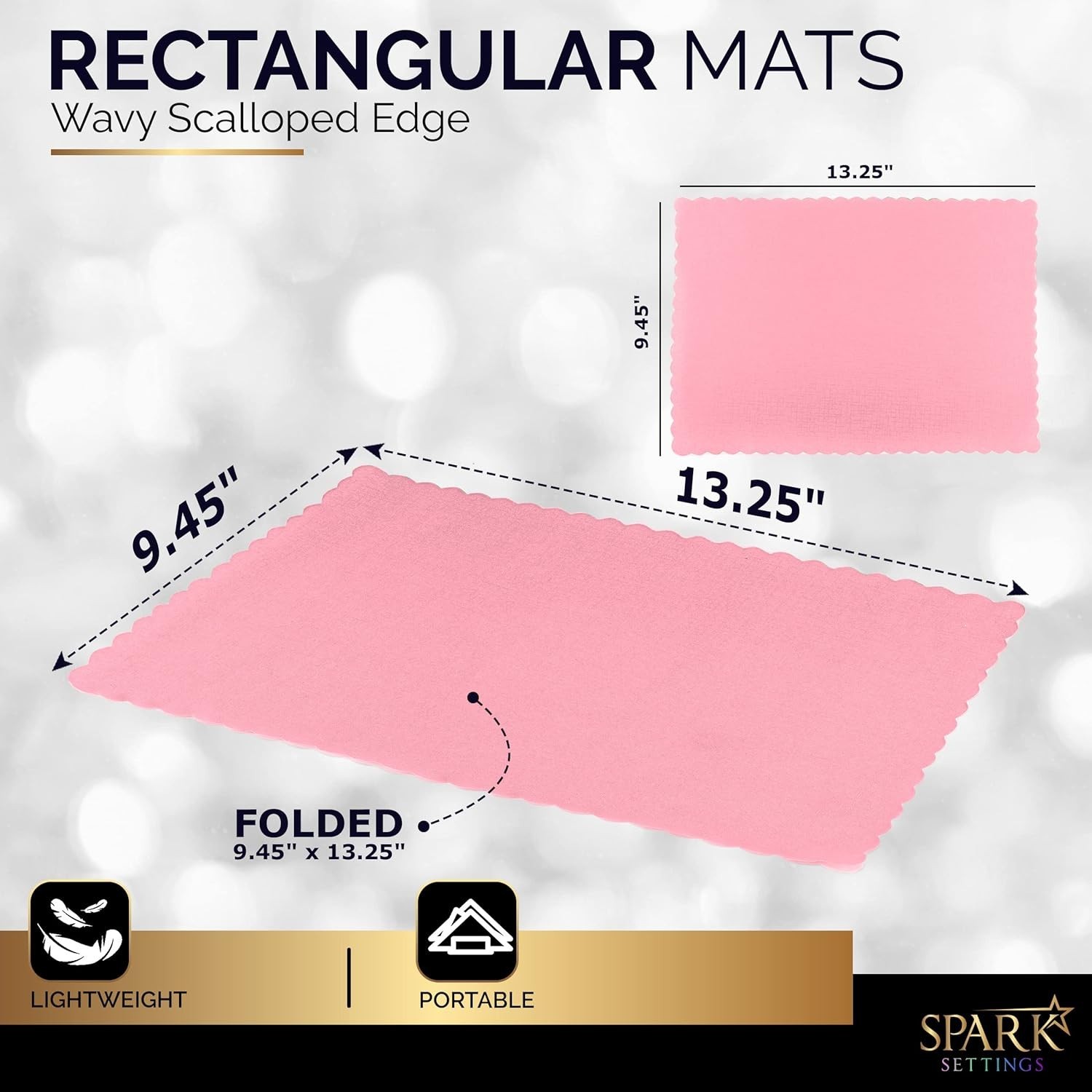 Paper Placemat Disposable, Pink Place Mats with Scalloped Edges, Durable Pape...