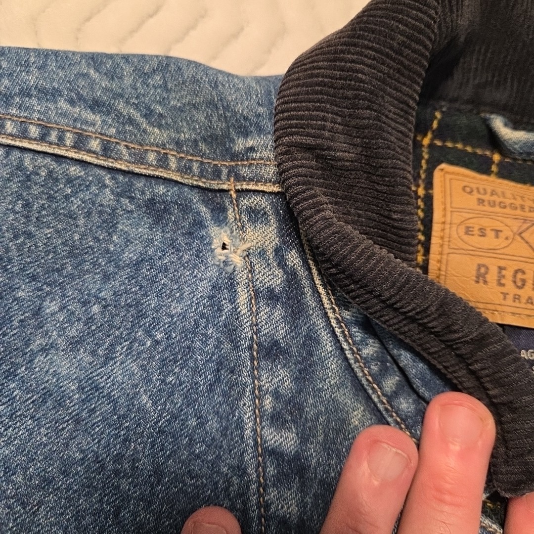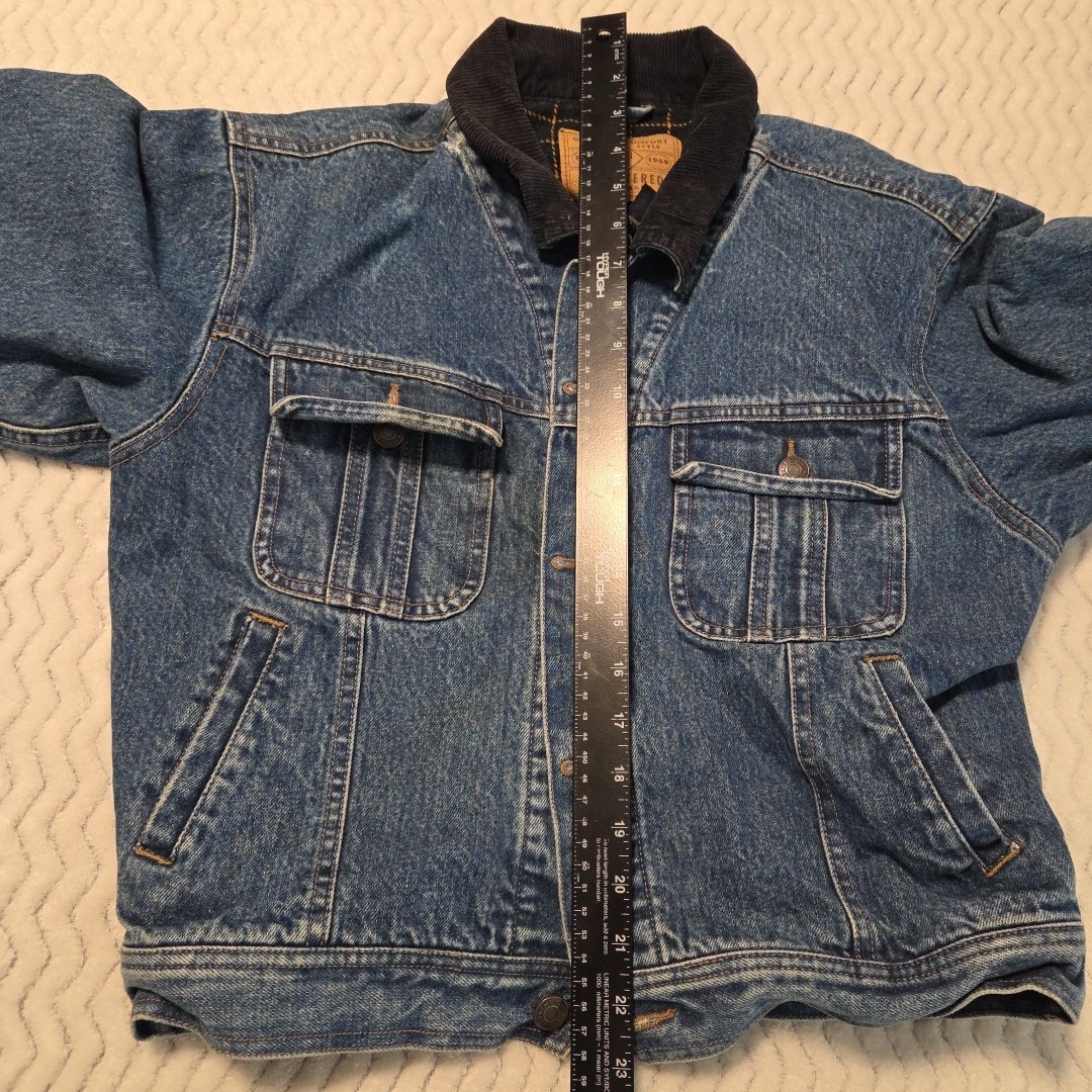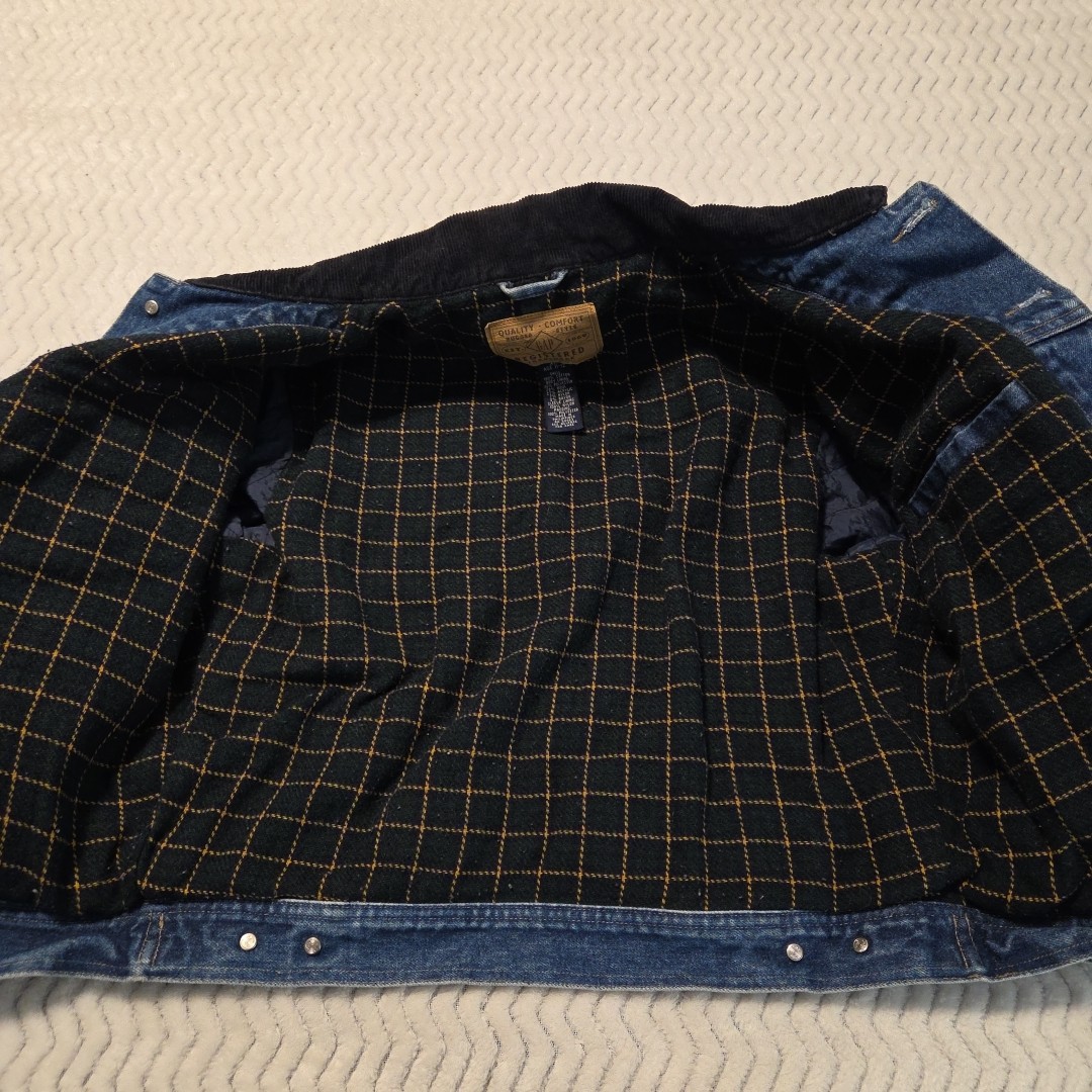 как выглядит Gap Kids Denim Blue Jean Fleece Lined Jacket Corduroy Collar Youth XL фото