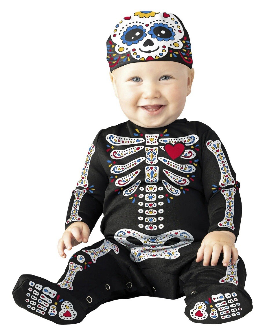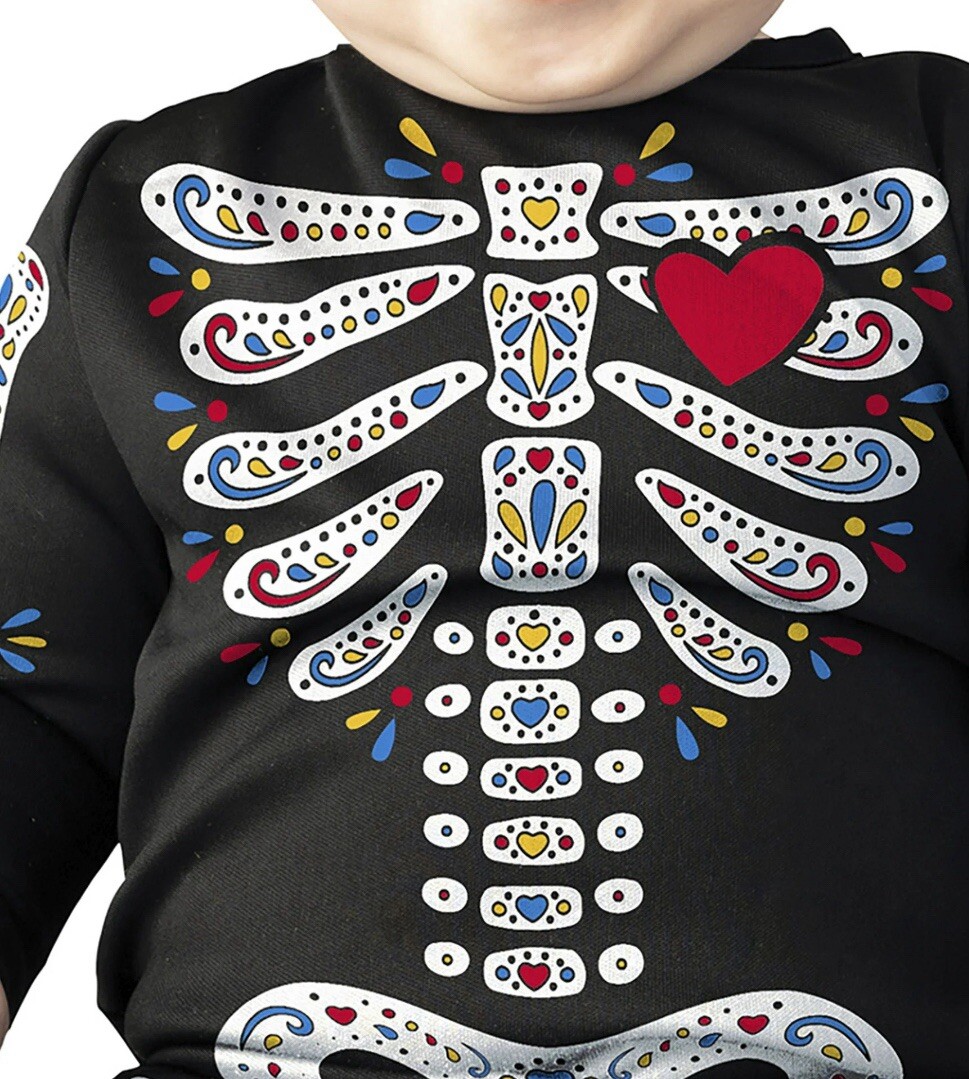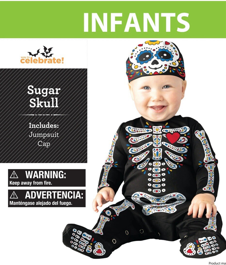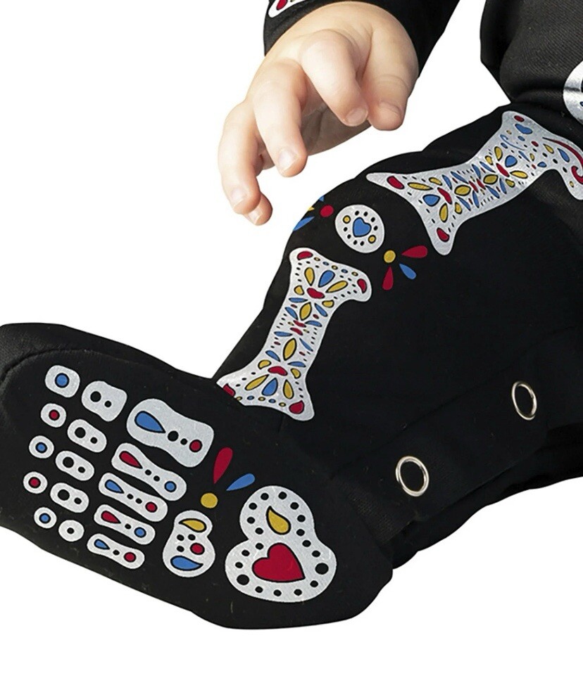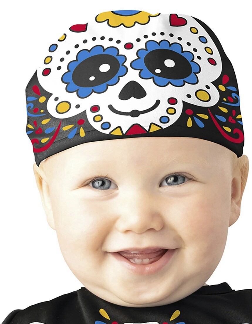 как выглядит SUGAR SKULL Infant Toddlers Size 6-12M Costume Footed Jumpsuit Cap Head Cover фото