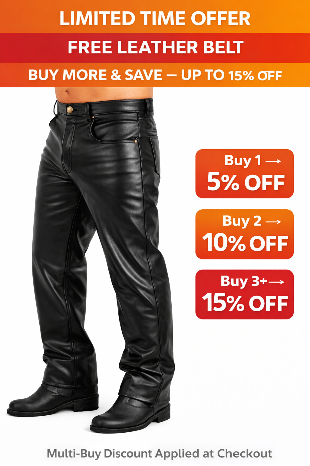 Men s Black Leather Pants Premium Quality FREE Belt Casual Biker Style