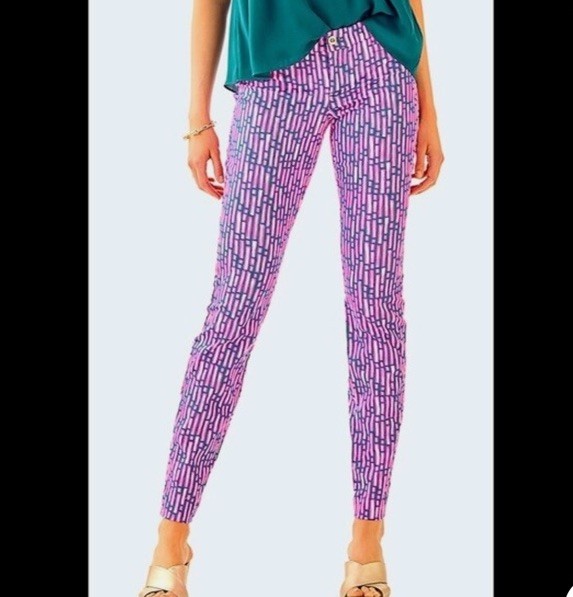 как выглядит Lilly Pulitzer Kelly Skinny Ankle Pant Mandevilla Pink Slathouse Stripe Size 2 фото