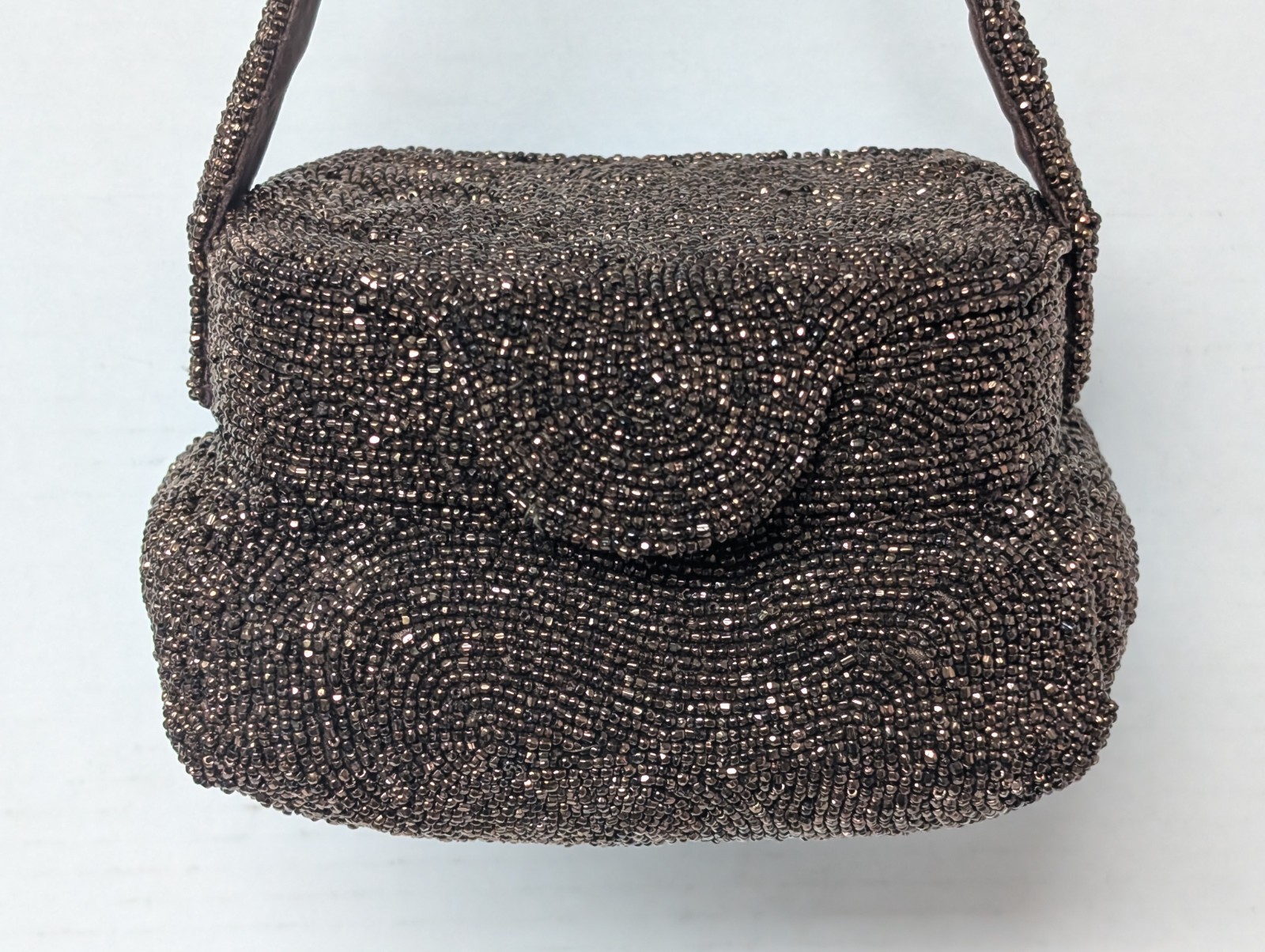 Vintage 1940s Paris K G Charlet Box Bag Brown Bronze Glass Beaded Handbag Purse
