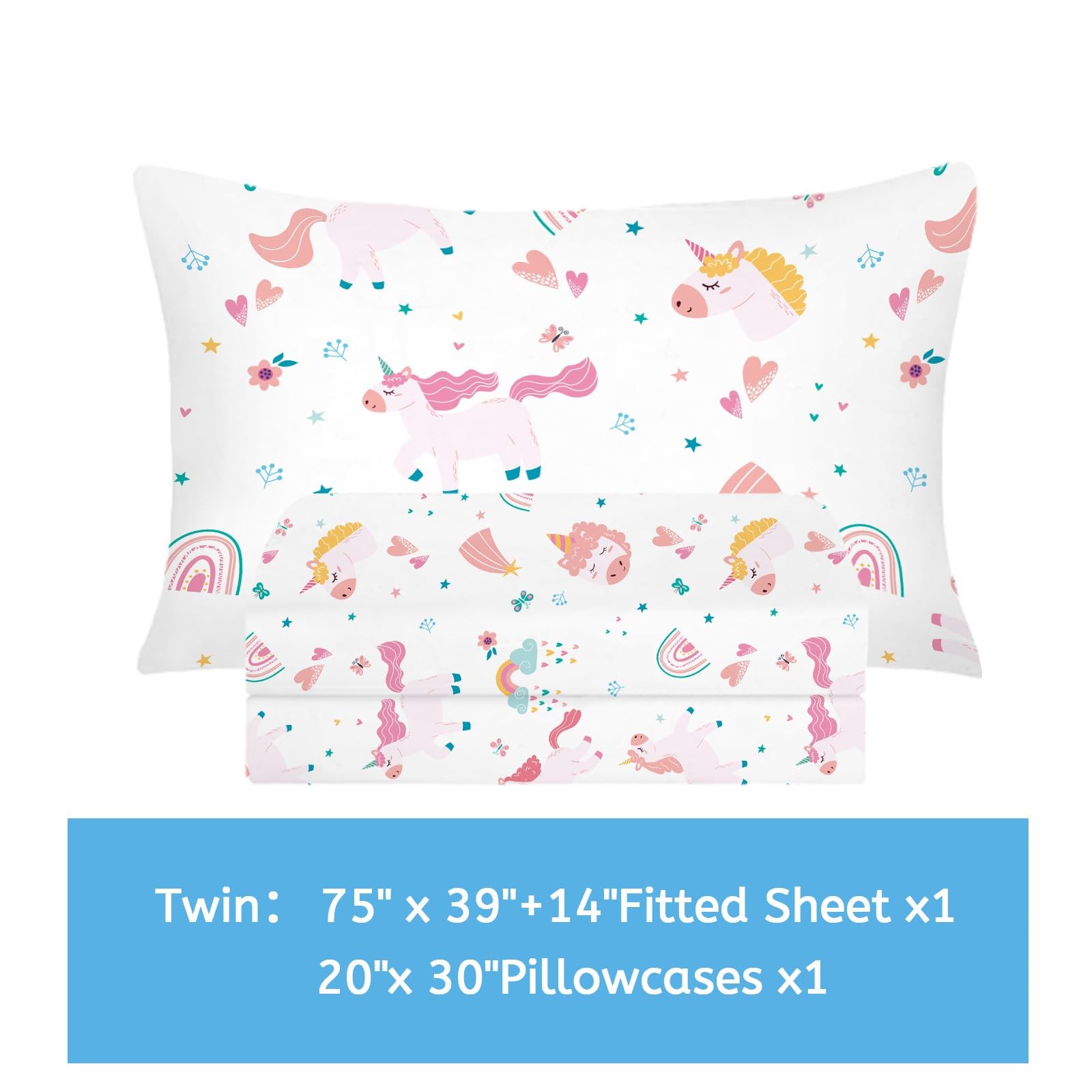 Unicorn Fitted Sheet Set Twin Size Pink Flower Rainbow Bedding Set for Girls ...