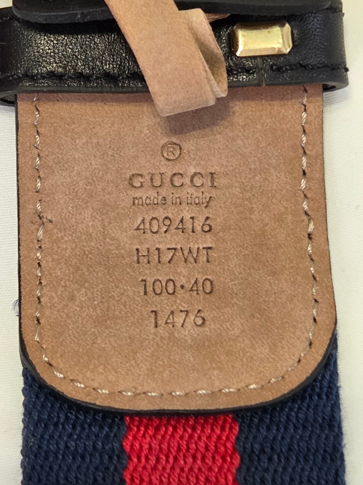 как выглядит Authentic Black Leather Gucci Web Stripe Belt Gold GG Size 34/36 100cm фото