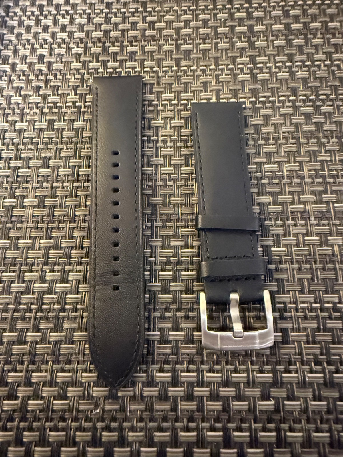 как выглядит Montblanc Mens 22/20mm OEM Black leather band comes with afternarket buckle фото
