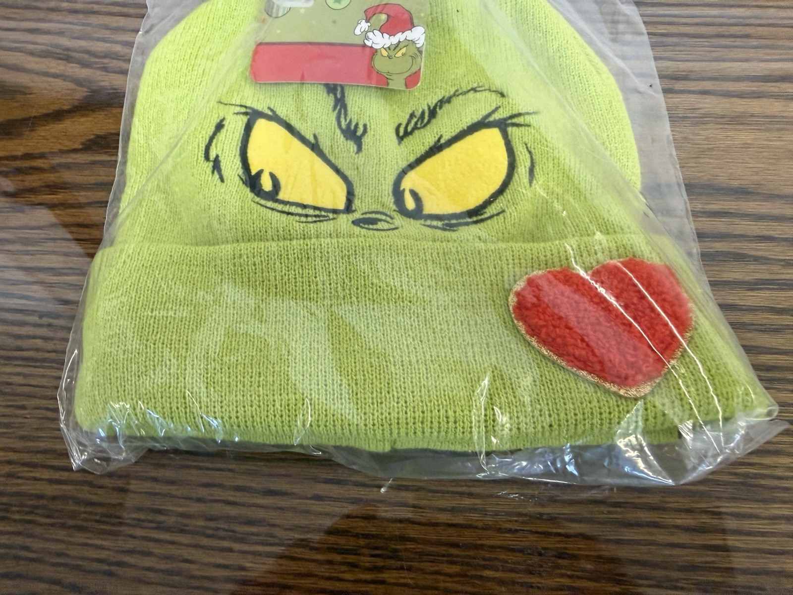 как выглядит The Grinch Dr Seuss Christmas Beanie Pom Green Red Heart One Size фото