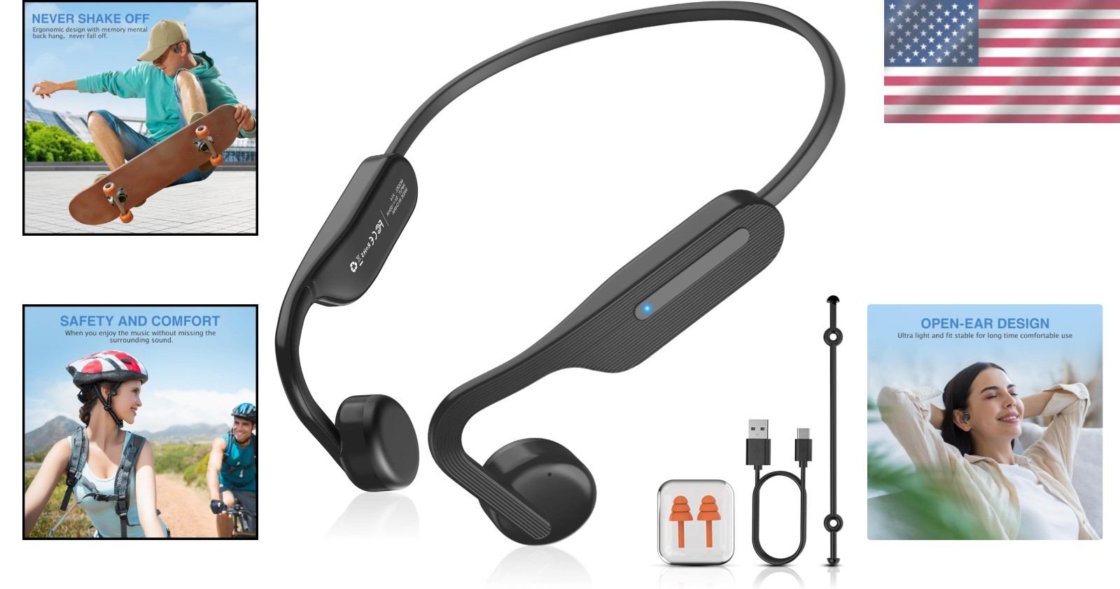 Особенности: Bone Conduction, Fast Charging, Long Battery Life, Waterproof, Lightweight, Comfortable, Stable, Silicone Pads